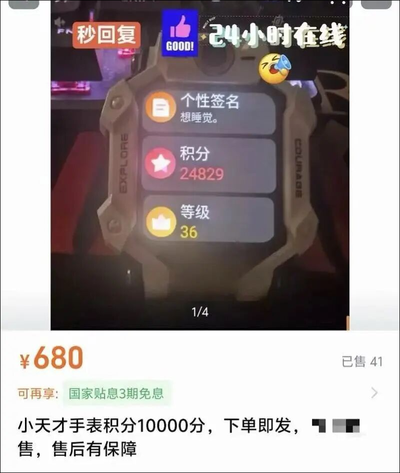 而如果觉得这种通过点赞,获得积分的方式太“浪费”时间,该商家还给出了另外的方案:可以直接购买高等级账号,“这样可以节省很多时间。”按照该店铺上架商品,小天才手表积分10000分,需要680元才能购买。