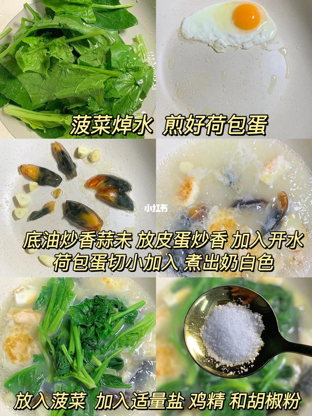 分享皮蛋菠菜鸡蛋汤!好惊艳!好鲜美!姐妹们一定要试试! [彩虹R]食材:皮蛋 菠菜 鸡蛋 🫕做法:如图所示~