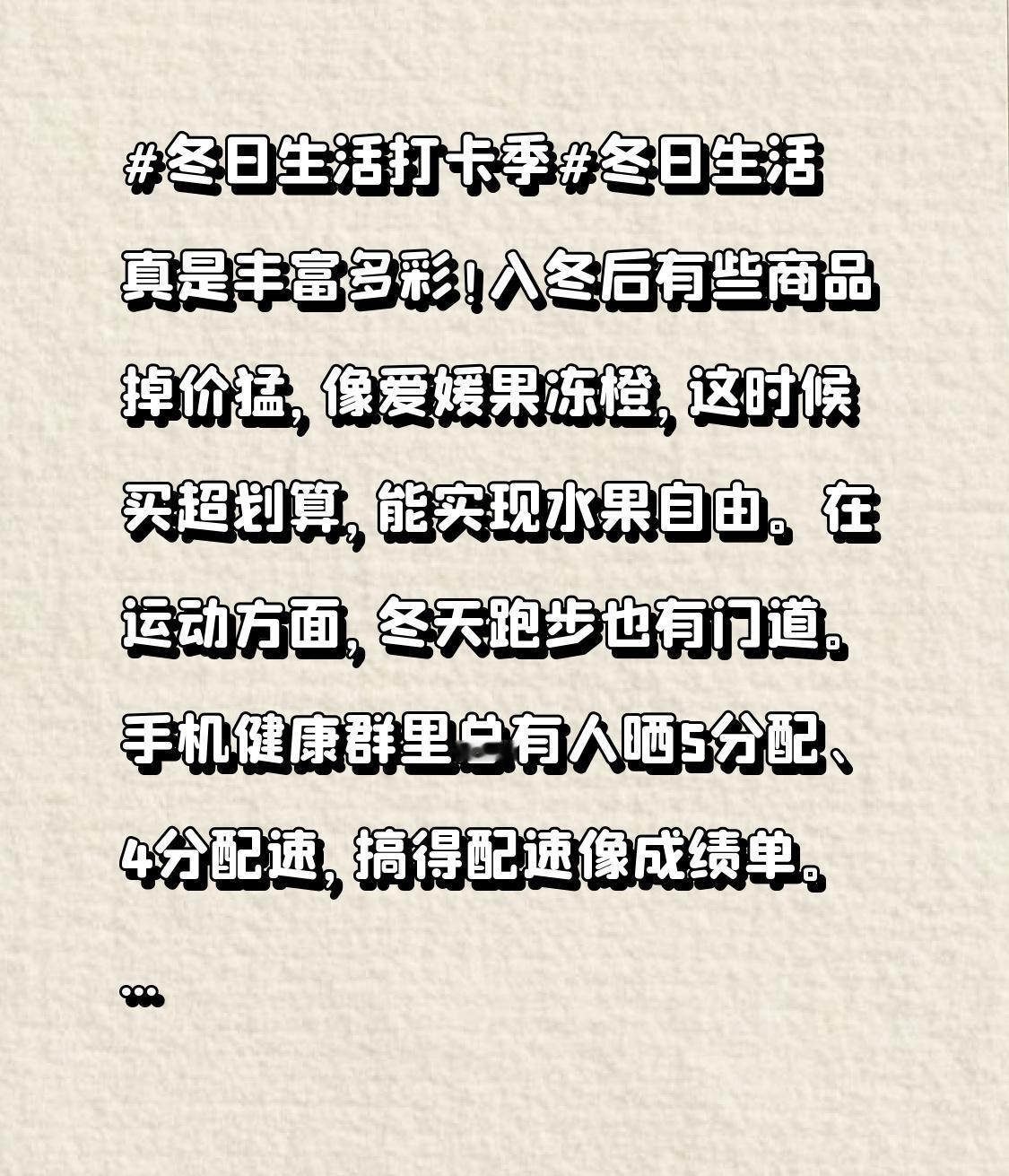 在运动方面,冬天跑步也有门道。手机健康群里总有人晒5分配、4分配速,搞得配速像成绩单。自己7分配速就会怀疑是不是不算跑步。其实8.5公里/小时就已算跑,双脚会腾空,心率也上升。《英国运动医学杂志》研究表明,6 - 8分配速慢跑,心血管疾病风险降27%,7分配半小时消耗约300大卡,超半来自脂肪,膝盖压力还低。健康不是比赛,普通人每周150分钟中低强度跑步就行,别死磕配速。