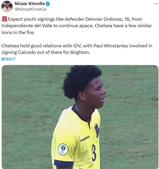 直播吧11月15日讯据切尔西跟队记者NizaarKinsella报道,切尔西在引援上继续瞄准青年才俊,蓝军已经预签厄瓜多尔16岁后卫奥多涅斯,蓝军还有一些类似的转会正在进行之中。