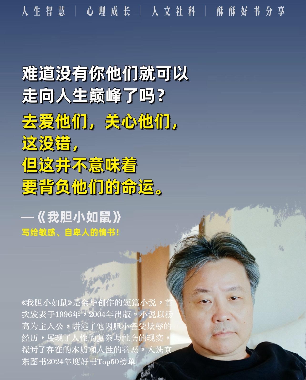 读完余华,后劲足到睡不着!余华的文字哪是“写”出来的,分明是带着力道往人心里“扎”的!读时从不用刻意凝神,情绪却早被悄悄勾着走——那些藏在心底、没说出口的细碎心思,那些欲言又止的暗流,全被他一字一句轻轻摊在纸上。后劲足得让人上头,翻页的手根本停不下来!