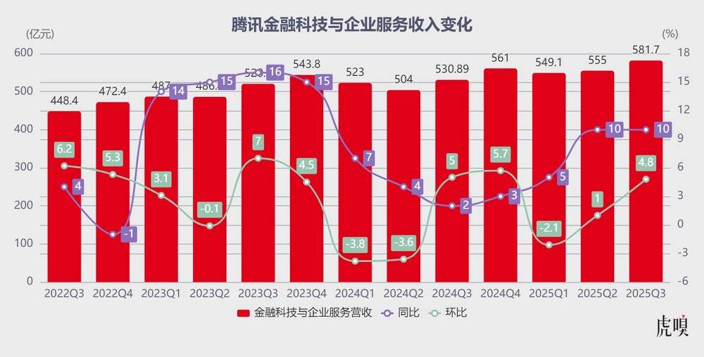 行文至此,或许有读者会认为:广告不过是低垂的“果实”,腾讯凭借流量势能实现双位数增长并非难事;那ToB业务的爆发,则足以体现这份财报的硬挺——2025Q3腾讯ToB业务同比增长10%达581.7亿元,连续两个季度保持双位数增速。