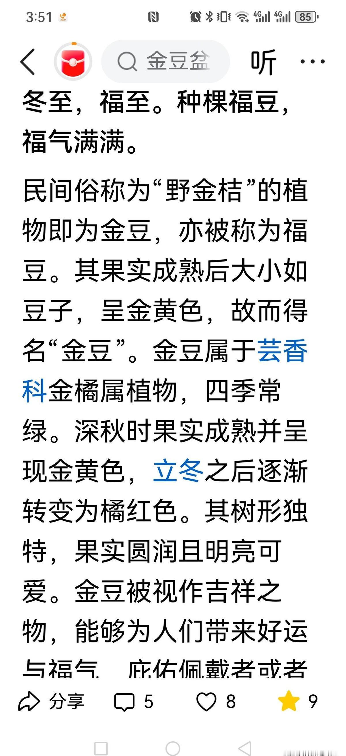 你家阳台那盆“金桔”可能不是金桔,是金豆。 别再叫错名字了,这俩长得像,但差得远。 金豆小如米粒,金桔却有拇指大。 一个用来赏,一个拿来吃,根本不是一回事。 很多人以为金桔和金豆是同一种植物,其实它们是两种不同的金柑属植物。 金豆个头小,果皮薄,主要用来观赏,还寓意吉祥。 金桔则个头大,果皮厚,适合做蜜饯,还能鲜食。 你以为家里那盆“金桔”只是个普通盆栽? 错! 它可能是贵上几倍的年宵花——金豆。 金豆因为“金玉满堂”的好寓意,在市场上卖得比金桔还贵。 尤其在广东、江苏这些地方,买金豆就像买年货一样普遍。 有人把它当成金桔养,结果发现果子小得可怜,叶子也细长。 原来,金豆不仅个头小,还更耐寒,更适合北方种。 金豆和金桔的区别,不只是大小那么简单。 你家阳台上的“金桔”,说不定真是一盆“福豆”。 别再傻傻分不清了,认清楚再养才不白费心思。 植物界也有“真假难辨”的戏码,看懂才能玩得转。