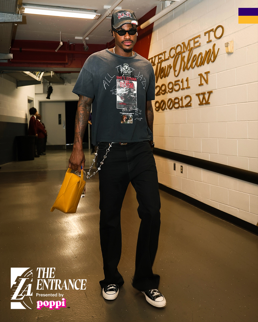 湖人官方ins发布。Poppi饮料品牌与湖人队联名推出周五主题穿搭系列