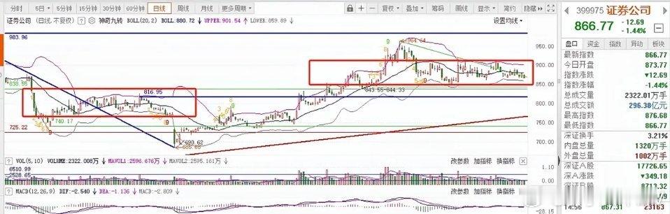 证券板块格局重塑在即,估值修复+资金加持,回调正是布局良机“证券板块将迎格局重塑,估值修复可期”已成为市场共识。当前板块估值仍处历史相对低位,PB仅1.51倍(处于正常区间),低于历史57.24%的时间维度;而行业资产收益率稳步攀升,2025年三季度达7.80%,2026年仍有望持续提升。站在当前节点,伴随流动性持续改善与利好政策落地,券商估值有望随市场回暖进一步抬升。因此,若下周证券板块出现急跌,无需恐慌,即便暂不布局,也应理性看待调整机会。从证券公司指数日K线来看,存在两大关键震荡平台:一是今年二三月份调整期构筑的769点~809点(816点附近)区域,当时证券ETF资金净流入超百亿,如今816点已形成坚实支撑;二是当前正在构筑的845点~939点近百点中枢平台,截至目前证券ETF资金净流入超500亿,完成构筑后将成为新一轮反弹的有力跳板。即便板块跌破90日线支撑,下一个120日线支撑位(无论是否触及)也不应视为实质性风险。周K线维度下,趋势尚未破位,本周虽未明确止跌,但已出现止跌迹象,下周至未来三周内,板块有望构筑“大底”,值得重点期待。对股市稳中有进的信心不可丢失,若未来A股迎来牛市或延续升势,证券板块作为核心受益主线。