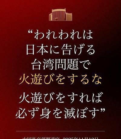中国外交部在社交媒体平台连发六张双语海报,对日本首相高市早苗涉台危险言论发出严正警告。海报连续质问日本是否要重蹈军国主义覆辙,是否企图再次与亚洲人民为敌。 中方明确指出,如日方胆敢武力介入台海,将构成侵略行为,必将遭到迎头痛击。外交部最后正告日本停止在台湾问题上玩火,否则必自取灭亡。 高市早苗此前声称台海冲突可能构成日本“存亡危机事态”,暗示将行使集体自卫权。这番突破历届政府底线的言论,已引发国际社会高度警惕。