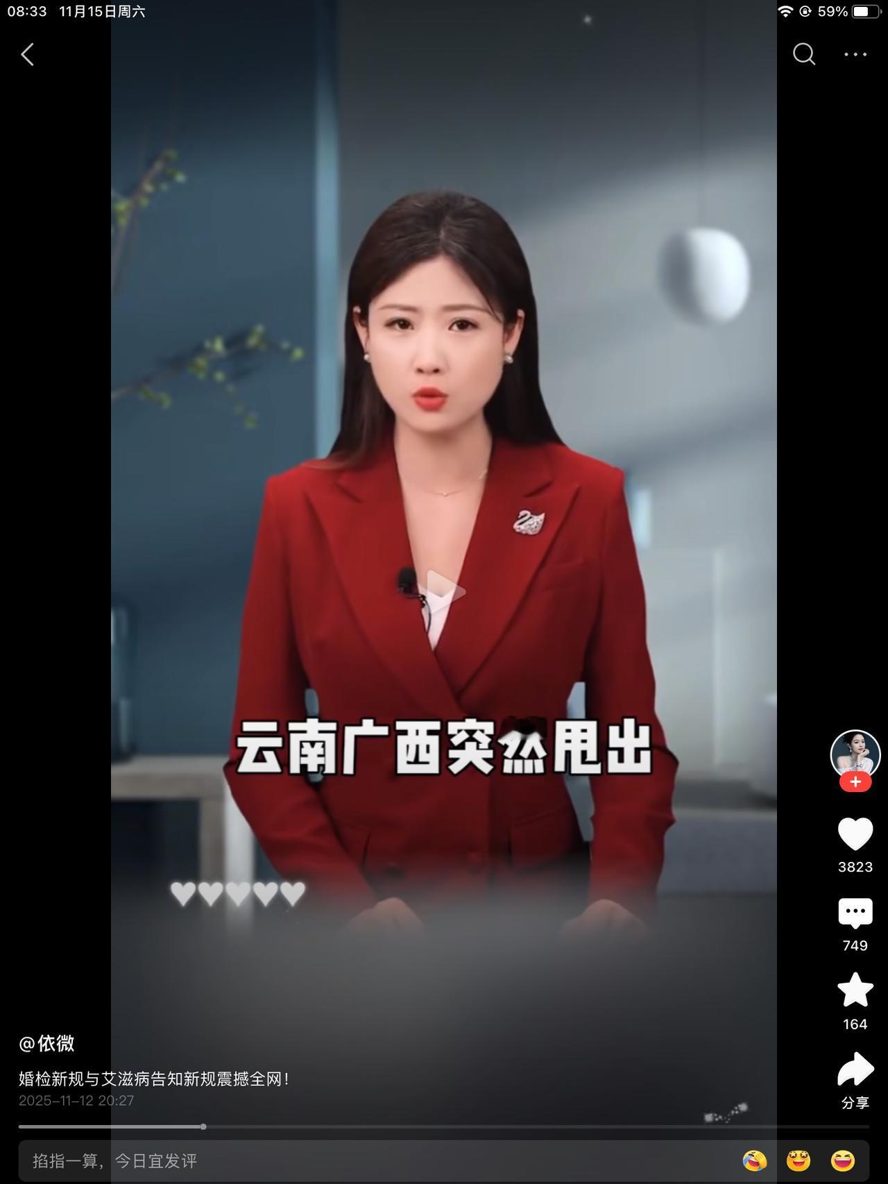 婚检新规~云南广西放出王炸新规。婚检检出艾滋病病毒必须告知配偶!这个规定太好了,无论哪一方出现问题,对方有权知道。如果已经同居的,就要及时去检查,能阻断的阻断。已经得上的赶紧吃药。 多活一天算一天吧!起码比后知后觉强。比得上了还不知道,傻傻拿彩礼娶回家强多了。这个病越来越多。如果不告知,越传越多。真是挺吓人的。当然,男方得病的也不算少数。没有男女比的说辞。 这个做法得到了群众的广泛支持,希望各地也能够跟上来。数字一直在增长,也没有治愈的药物。这个病本身还是挺吓人的。你说是吧?你支持云南和广西的新规吧?