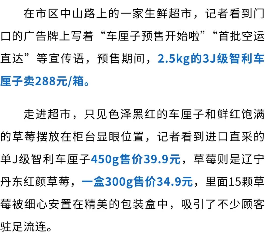 “现在还是比较贵的,草莓300g要34.9元,车厘子的价格还可以。”