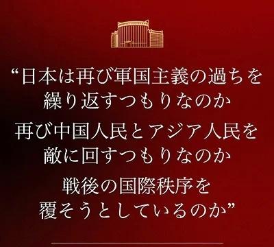 “日本是否要重蹈军国主义覆辙?是否要再次同中国人民和亚洲人民为敌?是否企图颠覆战后国际秩序?” 外交部随后表明立场:“如日方胆敢武力介入台海局势,将构成侵略行为,中方必将迎头痛击!