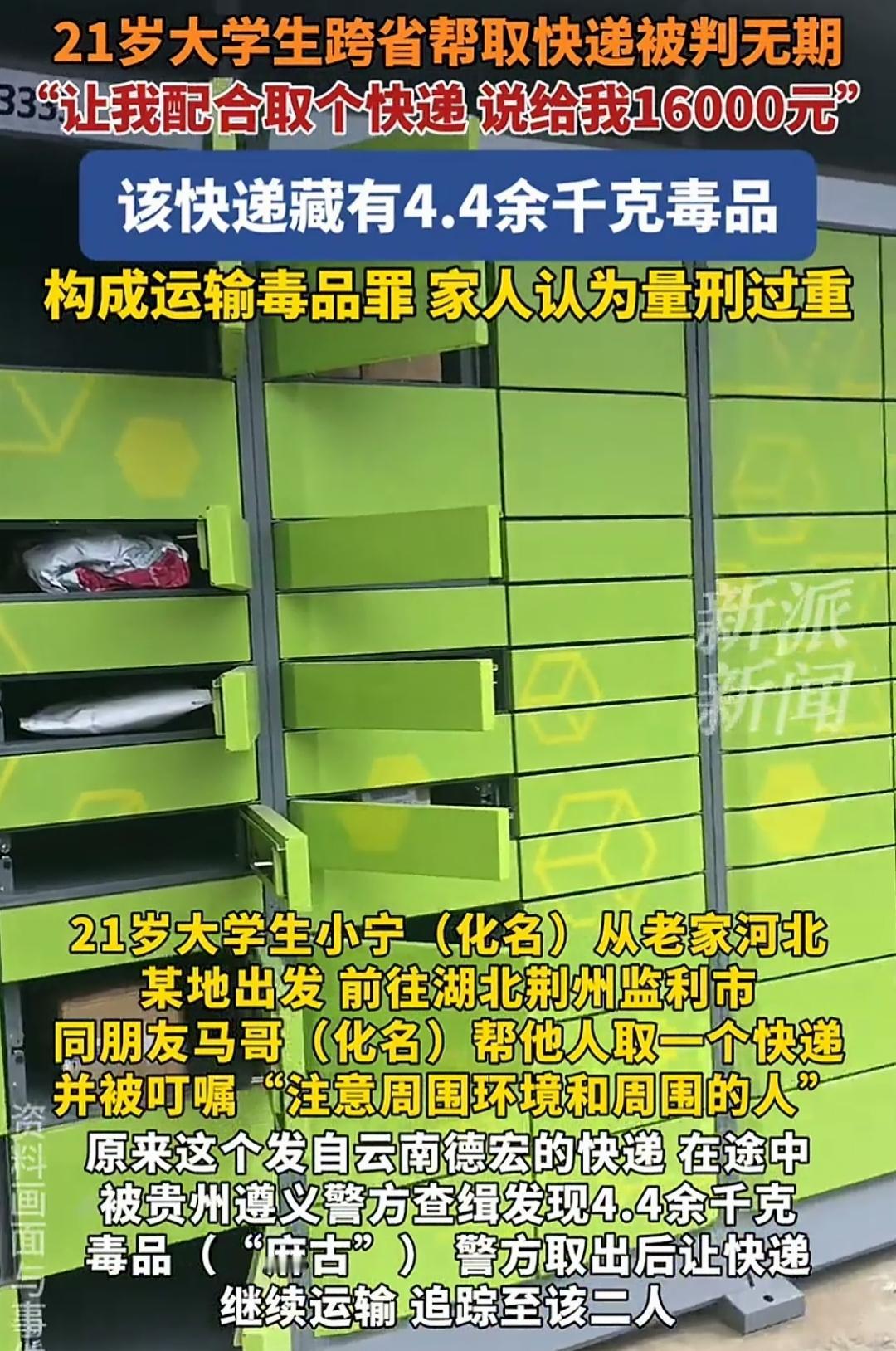 大学生异地帮取快递, 为16000跑腿费买断一生, 网友评论不一,到底发生了什么??? 5年前,21岁的大学生小宁(化名)在学校创业基地认识了马某和李某,多次帮李某办不记名电话卡。之后应李某要求从河北去武汉和马某跨省取快递,报酬16000元。最后因快递包裹里的物品违禁,当场被帽子叔叔控制。后被判无期。家属认为判太重。 网友们有的支持家长的观点,觉得小宁不知情。也有的网友觉得小宁已经是成年人,应该对自己的行为负责。 为什么小宁会走上这条路? 其一,家长管理教育不到位。家长也提到家里条件尚可,儿子犯不着为16000元断送一生。家长有没有考虑平时怎么教育孩子,有一个正确对待金钱的观念,怎么抵制社会的诱惑不走错路?取快递期间还出现没钱的情况,说明消费观也出现了问题。养成怎样的消费观念,控制欲望,不因钱而铤而走险。 其二,涉世未深被利用。小宁在帮李某等人办不记名电话卡就应该有所警觉,这种行为已经是不被认可的了。后面又因为16000元跑腿费敢冒风险,钱是那么好挣的吗?常在河边走,哪有不湿鞋。即便这次不出问题,以后还是会犯错。
