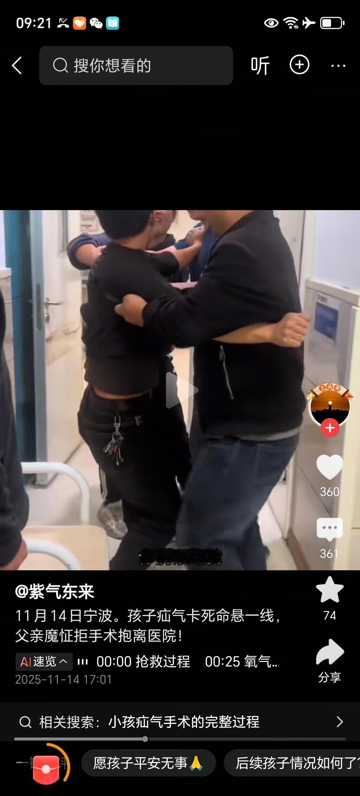 看到宁波直接上手拔掉孩子的输氧管和输液管,强行带孩子离开。他其实只是不想让孩子手术,手术意味着开刀,他孩子喝药能好就不用受这份罪了。 而且手术费确实不便宜,小儿嵌顿疝急诊手术的费用,普通地区三甲医院一般5千元到1万元不等。这个父亲想去其他医院看看,货比三家,万一可以让孩子不受罪又能省钱呢?其实很多人都是这么做的。一个病症起码跑了三家医院,小医院到大医院,本地医院到北京大医院。 事实证明孩子情况确实危险,超过48小时肠坏死、睾丸损伤都是永久性的。他没找到愿意接诊的医院,最终还是把孩子带回原医院手术了,现在情况总算稳定下来。 孩子命悬一线父亲拒手术合理吗
