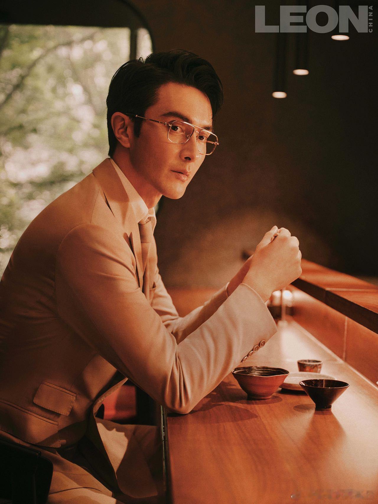 191cm身高穿西装简直降维打击,窄腰宽肩比例优越,深邃眼眸搭配金丝眼镜,举手投