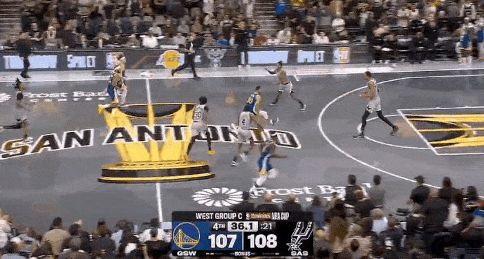 虎扑11月15日讯NBA杯小组赛,勇士对阵马刺的比赛正在进行中。