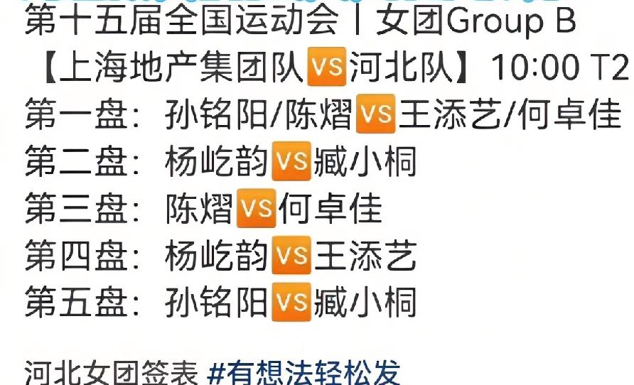 看到河北队的对战名单, 自家的孩子自家疼, 太暖心了。 今晚莎莎有女单半决赛, 所以河北队对战上海队, 就没有安排莎莎出场, 莎莎连现场都没有来。 小杨指导单打对莎莎来说, 意义重大, 也是她的梦想, 所以让她安心训练。 真是自家孩子自己疼, 这样的安排真是让人泪目, 莎莎半决赛加油!! (图片源自于网络)