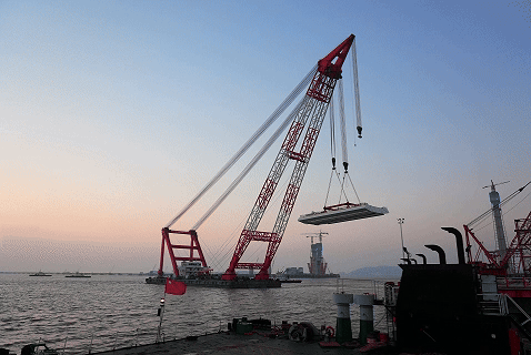 在浪涛汹涌的海面上完成5毫米精度的吊装,靠的是“智慧工地”的全面赋能。施工管理平台实时统筹全局,GNSS定位系统与气象水文数据构筑起风险预警网,36套步履顶推器与76台自锁千斤顶组成钢铁阵列。这座科技赋能下的超级工程,目前整体进度已突破60%,预计2027年底全线贯通。