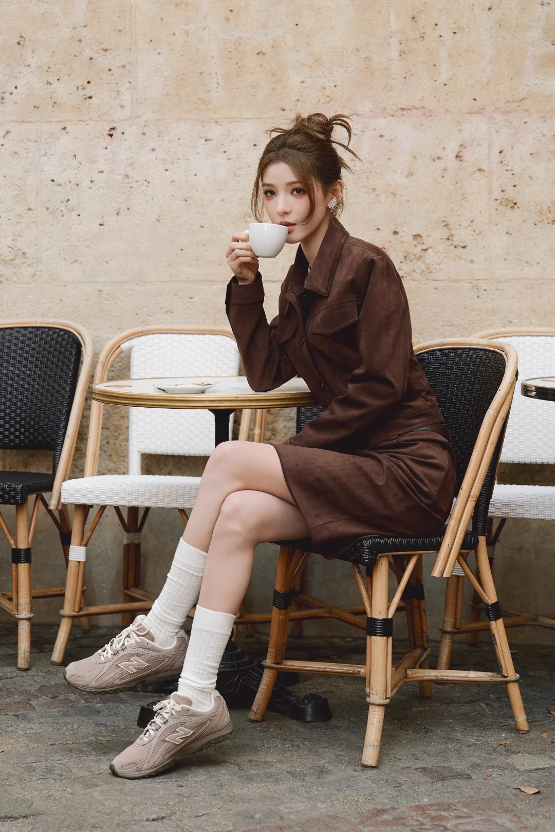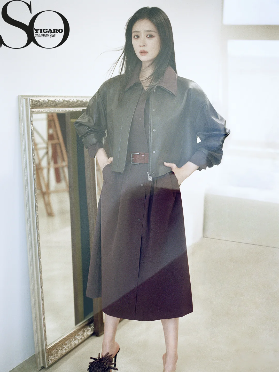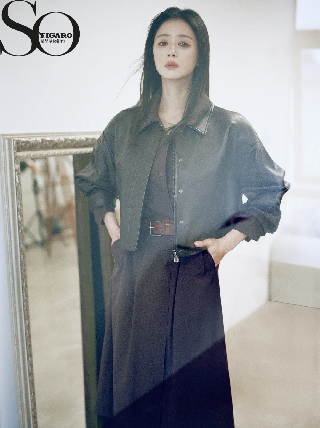 蒋欣一组大片,咖色皮衣叠穿红棕色风衣,衬得一水的好气质,真的好美啊! 感觉美拉德色系这种风格今年依旧经典,张予曦也演绎了一套,同色系的夹克配半裙与小白鞋,复古又时髦! 图源:张予曦 So Figaro精品购物指南