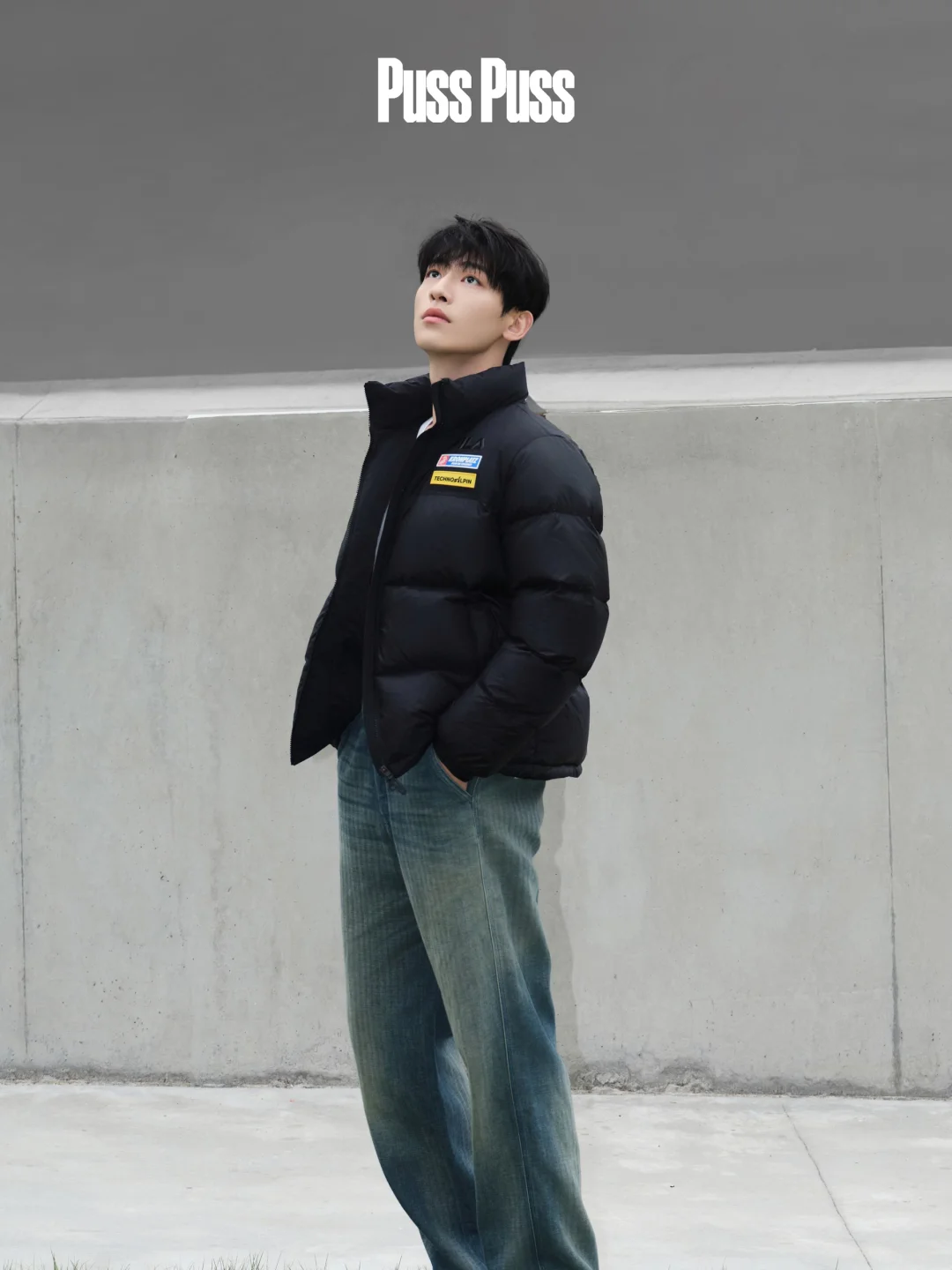 辛云来私服,羽绒服配白T与牛仔,清爽男大