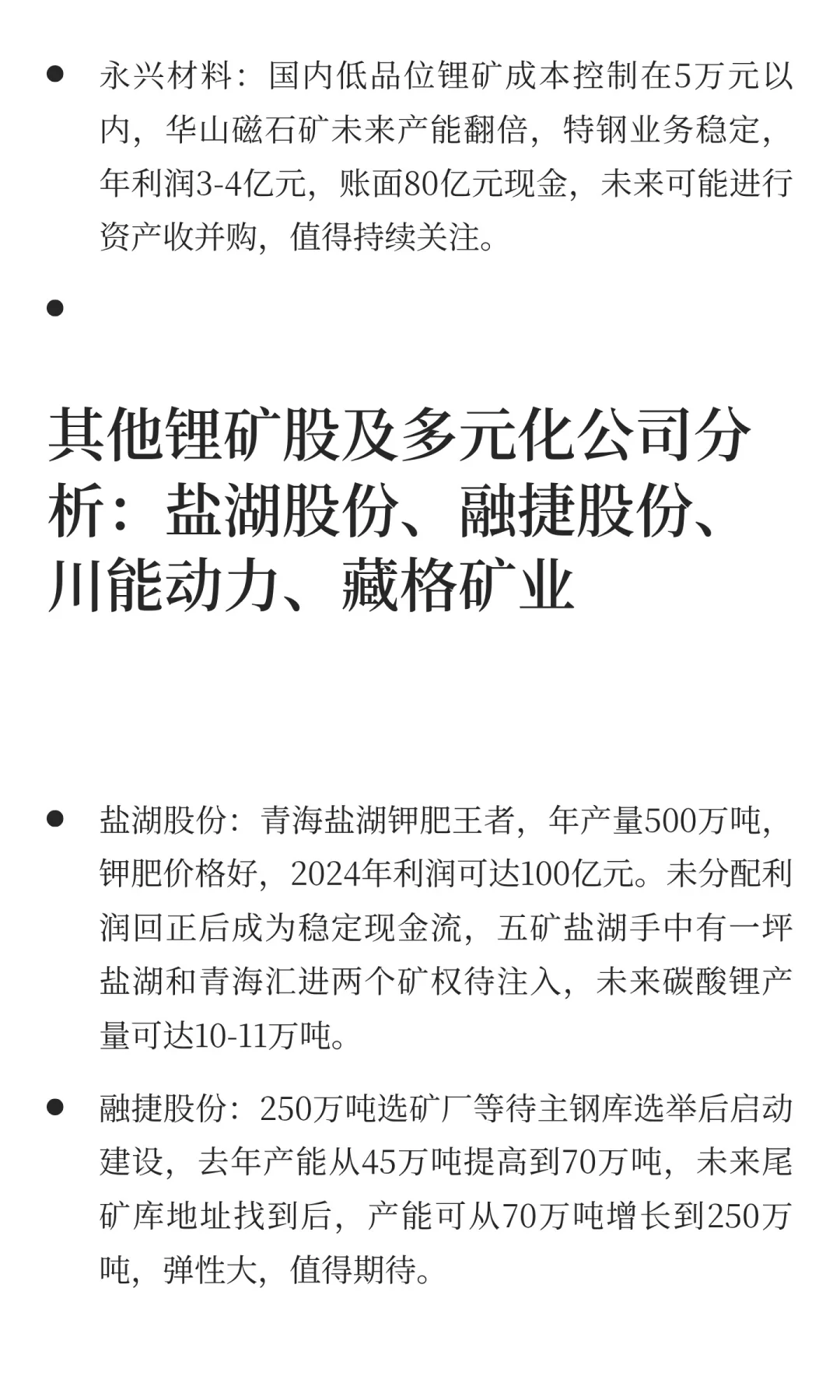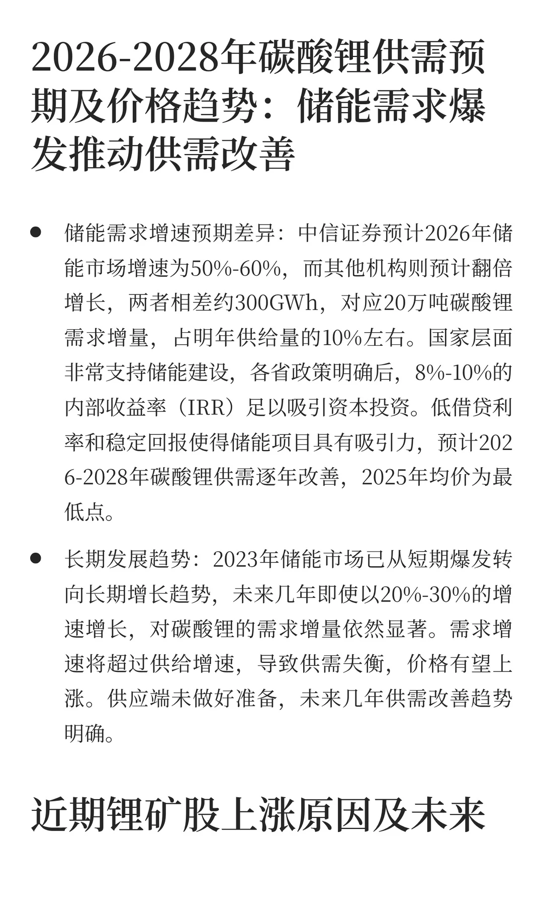锂矿行业的供需情况及未来前景,以及具体个股的投资逻辑