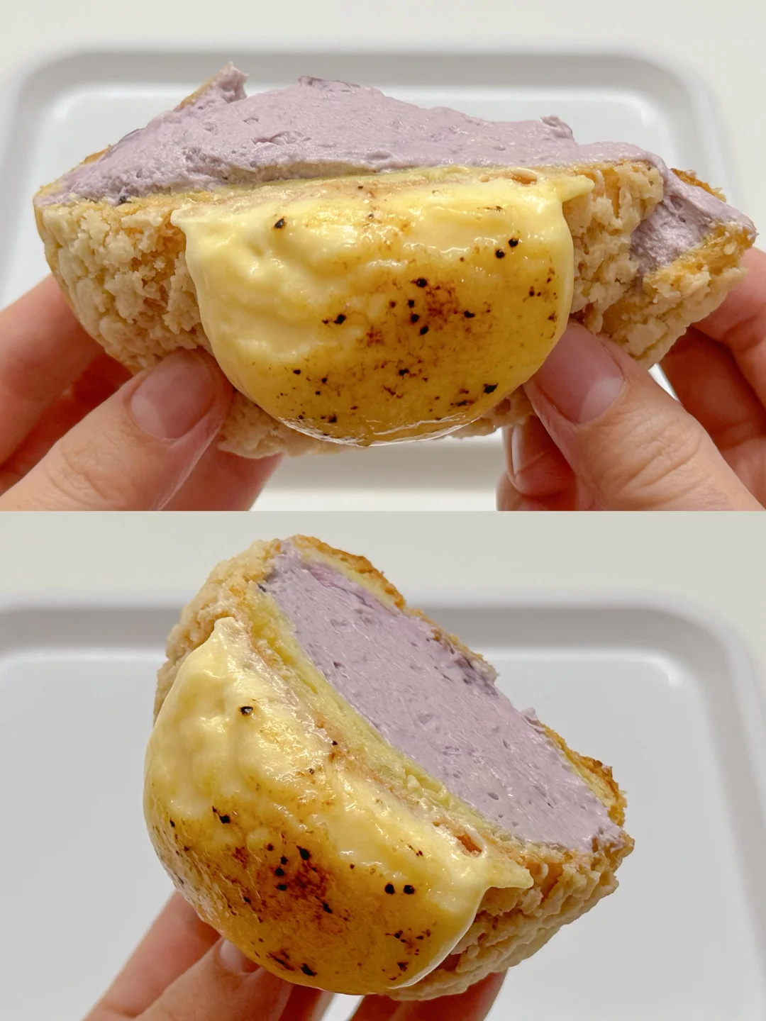 酥到掉渣的泡芙+香甜浓郁的蓝莓芝士奶油+焦糖烤布蕾