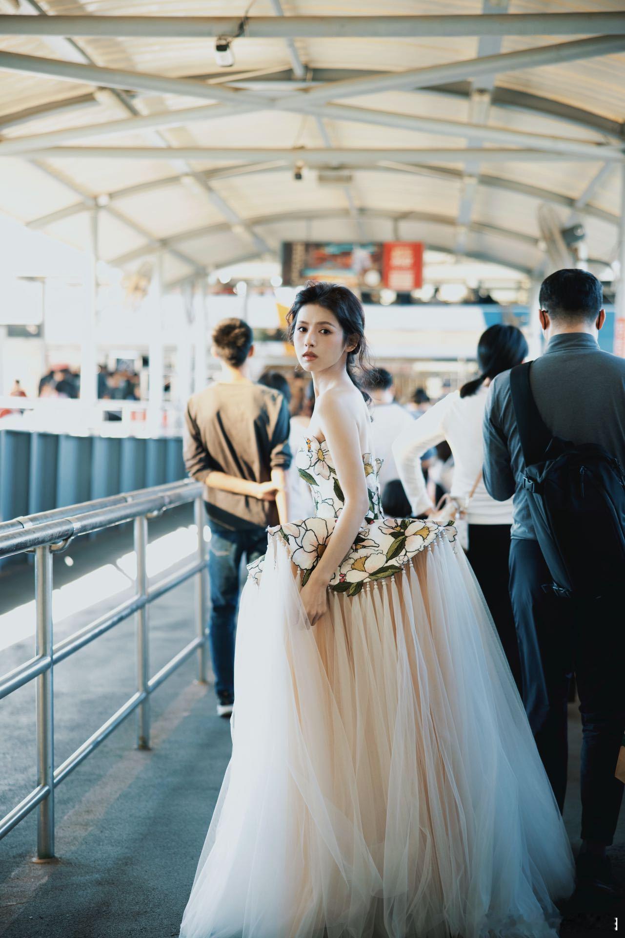 内娱出图速度天花板!蔚蓝海边的裸色长裙造型,浪漫到无以复加,回眸一笑自带光芒,端