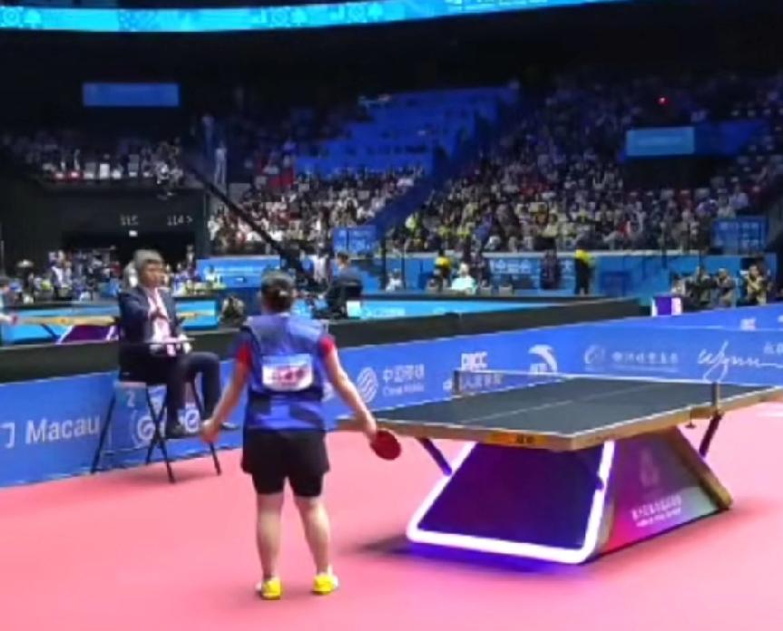 在今天上午的女团比赛中, 河北队对战上海队。 因为今天只关注樊振东与王楚钦的比赛了并没有多看。 后来才知道原来是因为裁判在何卓佳关键分的时候罚了她一分, 是在何卓佳与陈熠的对抗中。 据说是由于发球高度不够, 但是二号台没有鹰眼, 赛后何卓佳站在河北队里面一顿输出, 看出来急了, 有种想哇哇大哭的表情。 不知道河北教练杨广弟有没有去找裁判申诉? 到何卓佳是特殊打法, 具体是高度够不够我们也不知道, 反正是在关键分上大分运动员可能也会想不开。
