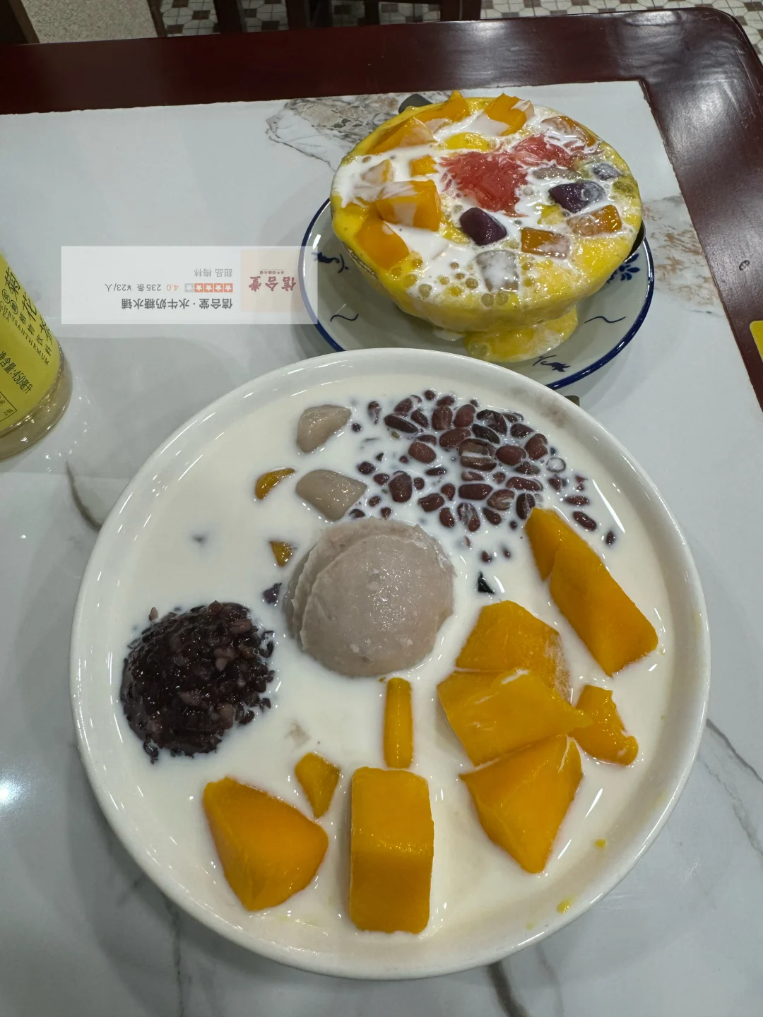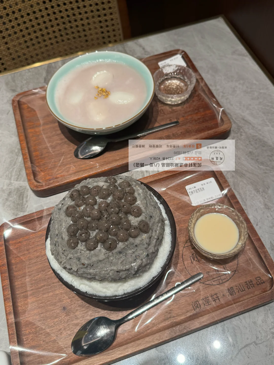 味道都还行 就是常规糖水味 没有意外好喝 属于会再喝的就是:P4的木薯糖水(第一次吃到没有丝的木薯!很糯很好吃)还有P9的鸭母捻(馅儿满满!好软糯) 以上糖水:黑芝麻糊双皮奶 木薯芋圆糖水 芋圆杨枝甘露 大满贯 芝麻冰 芋泥鸭母捻 绿豆通心粉糖水