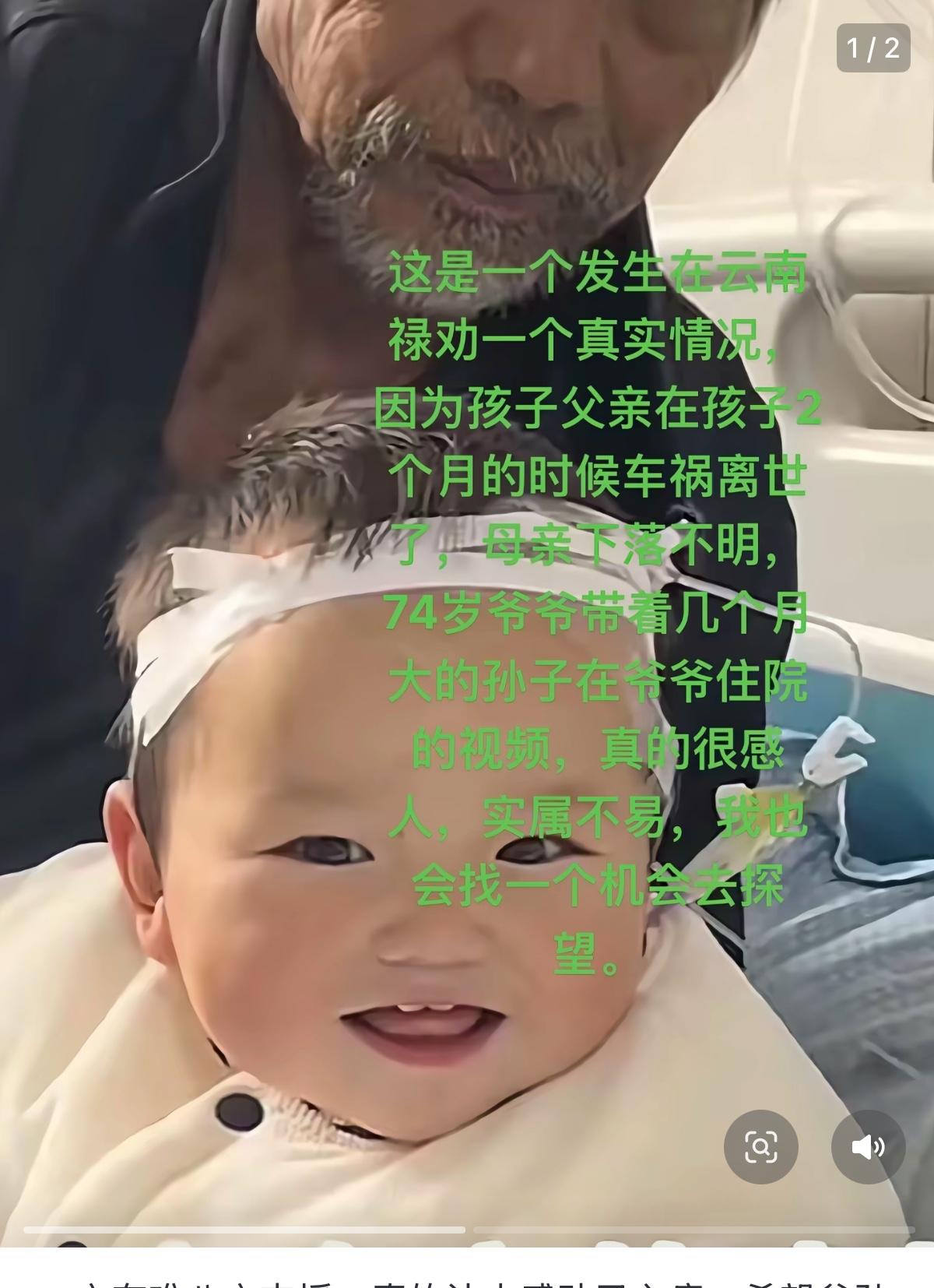 破防了!昆明74岁爷爷带1岁孙子住院,看完这幕谁能不心疼! 孩子爸车祸离世,妈