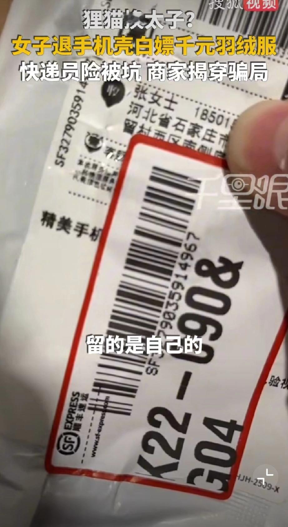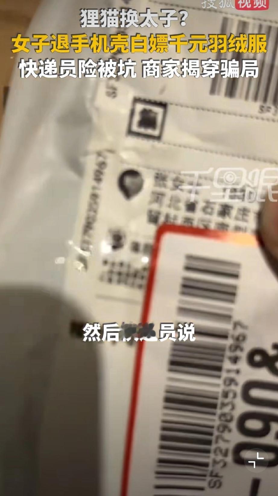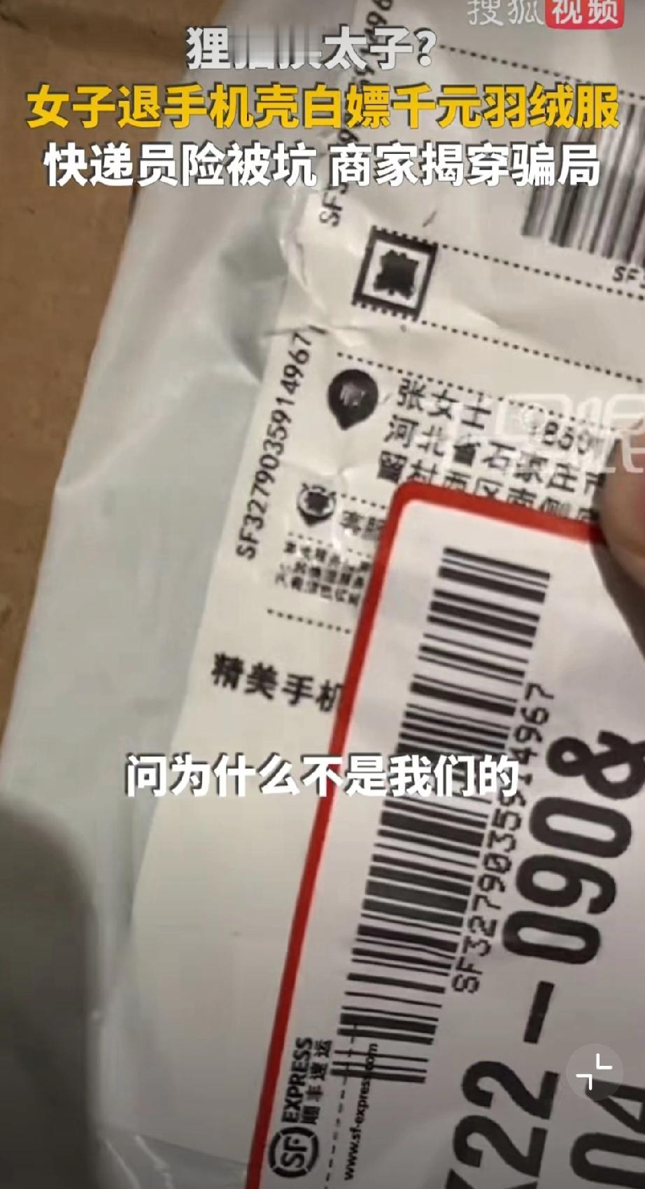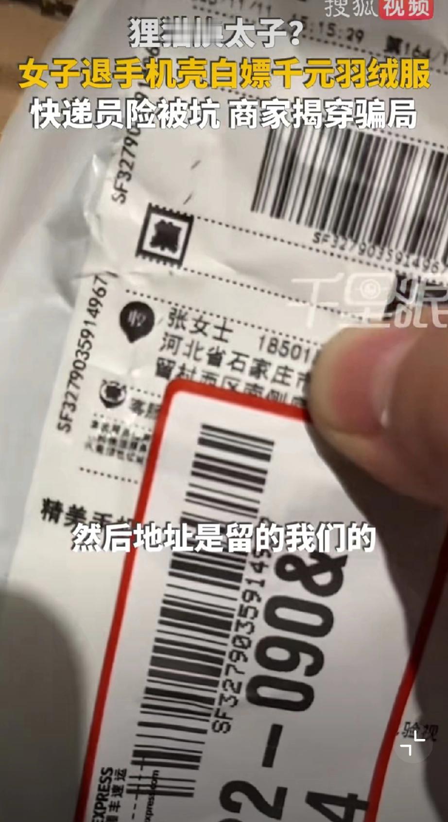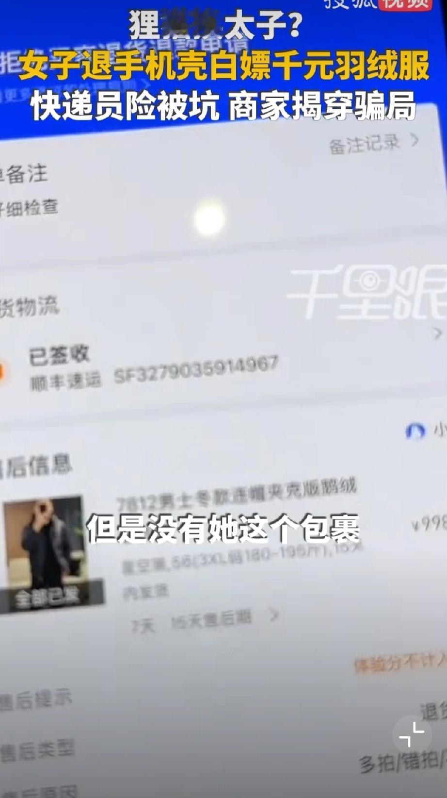 不愧是XXN。 知道她们坏,但坏得流脓也是让我大开眼界。 日前,有商家发视频爆料说,他被XXN上了一课。 商家说,XXX在他这里下单买了个998的羽绒服,收到货以后申请退货。 也得亏是XXN的账号被平台打上标签,后台显示异常,他特别标注到货后要仔细检查。 结果让他大开眼界。 商家说,售后人员在处理售后的时候,发现退货件已经显示签收,但是没有对应包裹。 商家于是就联系了快递员,得到答复说,这个件不是他们的。 商家与快递员沟通后获悉,XXN的行骗手段居然是,只留商家的地址,但像是收货人和手机号等,留的都是她自己的。 这样一来,当快递到达签收地后,快递员就会跟她打电话,然后她就会以“寄回的是手机壳,根本不值钱”为由,让快递员点完签收以后,直接丢掉。 由此,后续赔偿就在快递员这边了。 幸亏她信用异常,让商家留了个心眼,后来及时发现,不然的话,快递员几天时间直接白干了。哪种文化是不可取的? 快递员那些事 你有薅过外卖0元购的羊毛吗