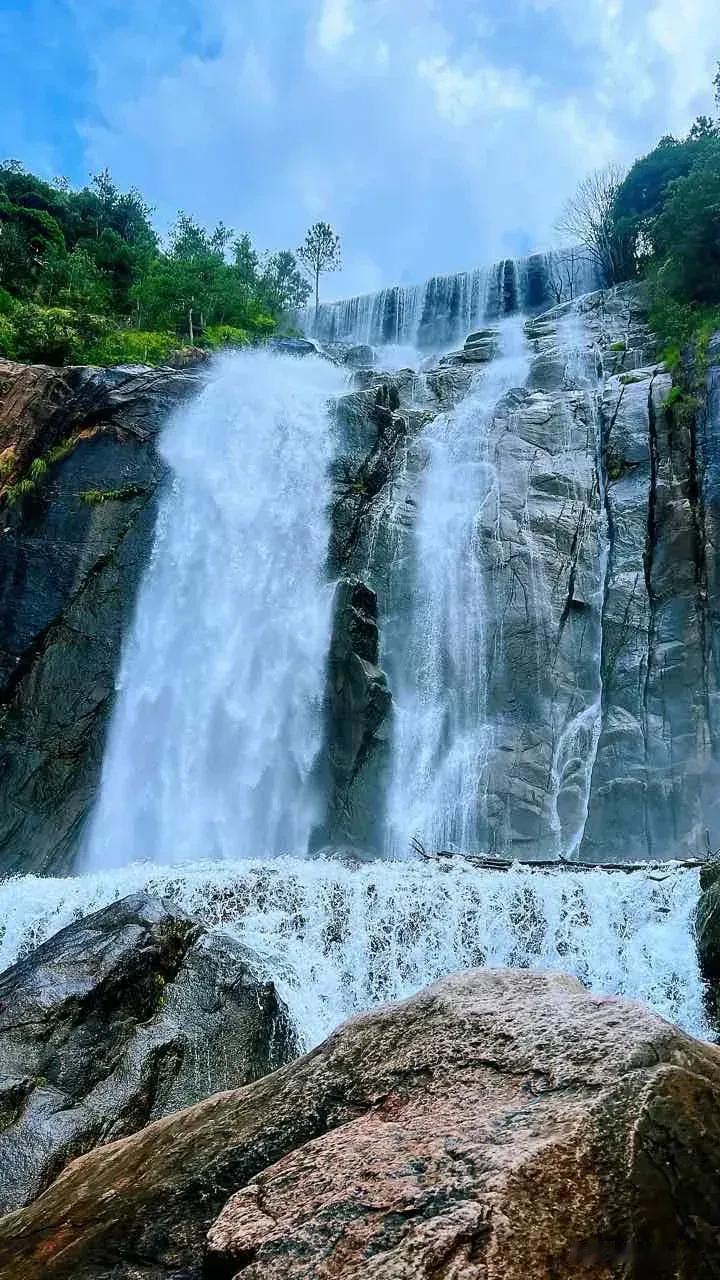 水流从高空坠落的刹那,白花花的一片宛如碎玉,轰隆隆的水声裹挟着水汽扑到脸上,连空气都透着一股清冽——天台山大瀑布🍃💦⛰️,值得来逛逛🚶♀️