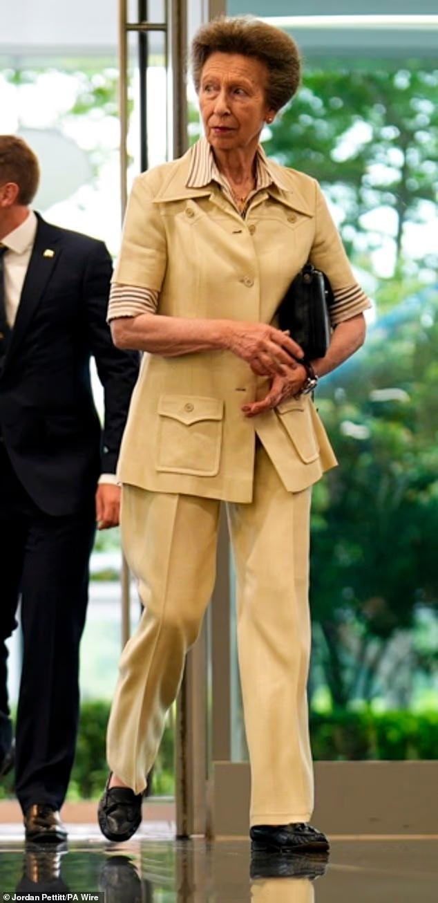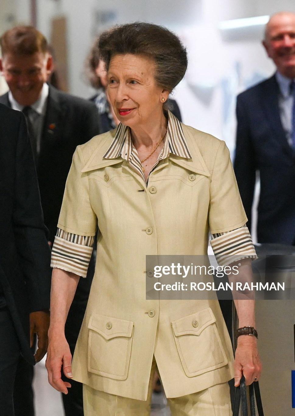 前两天在访问新加坡时,英国安妮公主从衣柜里挖出了一套短袖米黄色裤装,上次穿着得追溯到1973年,那会她和前夫哥马克似乎还没结婚。现在52年过去了,她跟现任驸马蒂姆都结婚30多年了安妮的确是贵圈循环旧衣的神