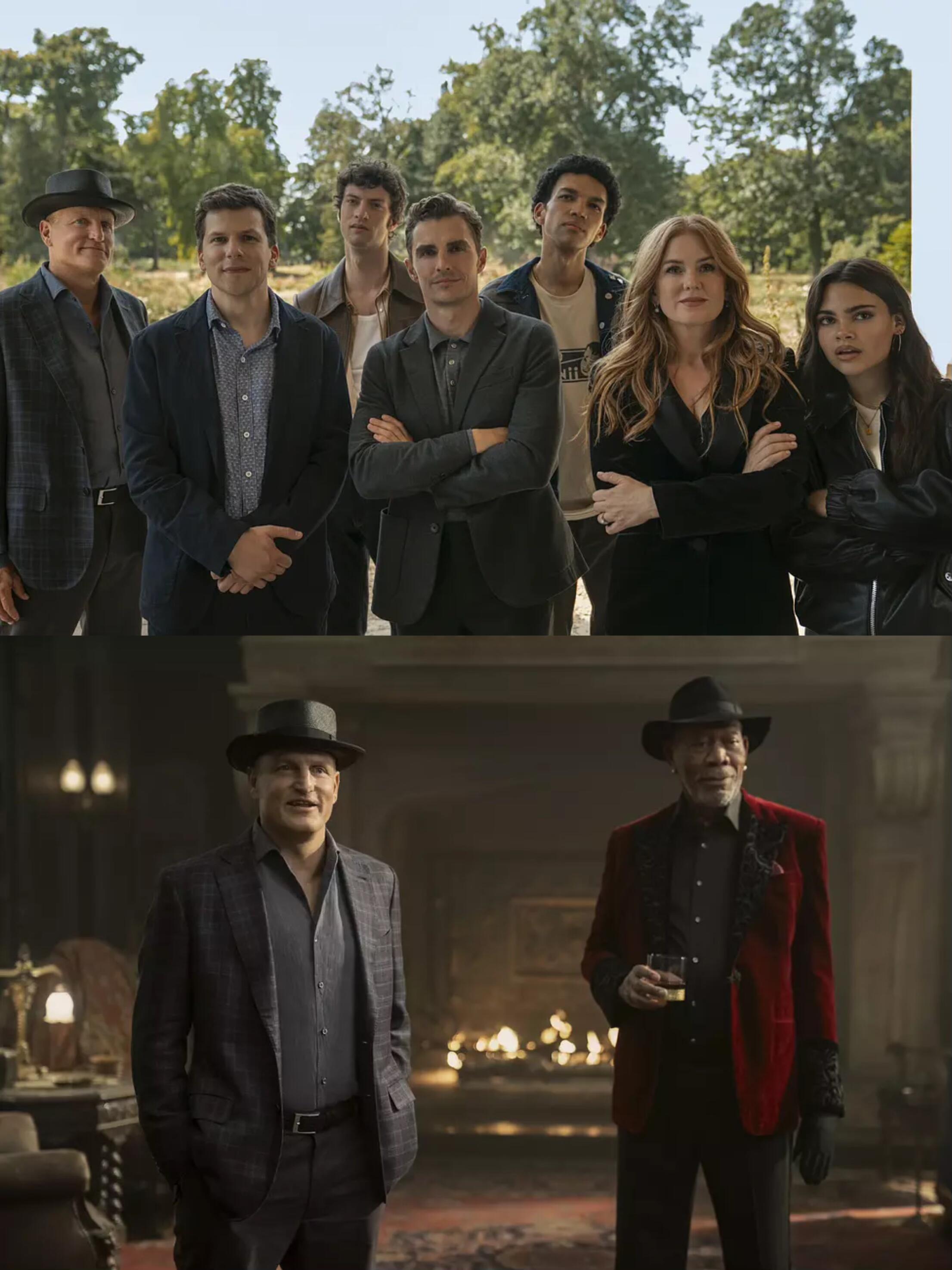 这才是大片该有的样子!初代四骑士和新加入的三位骑士和回归的卢拉没有一个不牛的没有一帧不爽的!老骑士新骑士靠魔术来互动,飞牌、扇子变雪花全是实拍,大银幕看特别有代入感,像坐在魔术秀现场一样过瘾!剧情节奏很紧凑,没什么废话,反转一个接一个,虽然猜不透但不生硬,不用补前作也能看懂全程,到处都是梗,笑点也很密集,反正看老人聚在一起叙旧唠家常就很温馨,总也看不够,下一部一定还是要原班人马啊!!!
