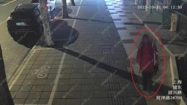 接报后民警立即开展调查,通过店铺周边公共视频,发现了一个可疑的身影:一名棕色头发,身穿红色裙子、外套红色格子大衣的“女人”在店外长时间停留、徘徊,行动间刻意低头躲避镜头。因其不合时宜的穿着、怪异的行为举止,民警很快锁定其为重点嫌疑人。