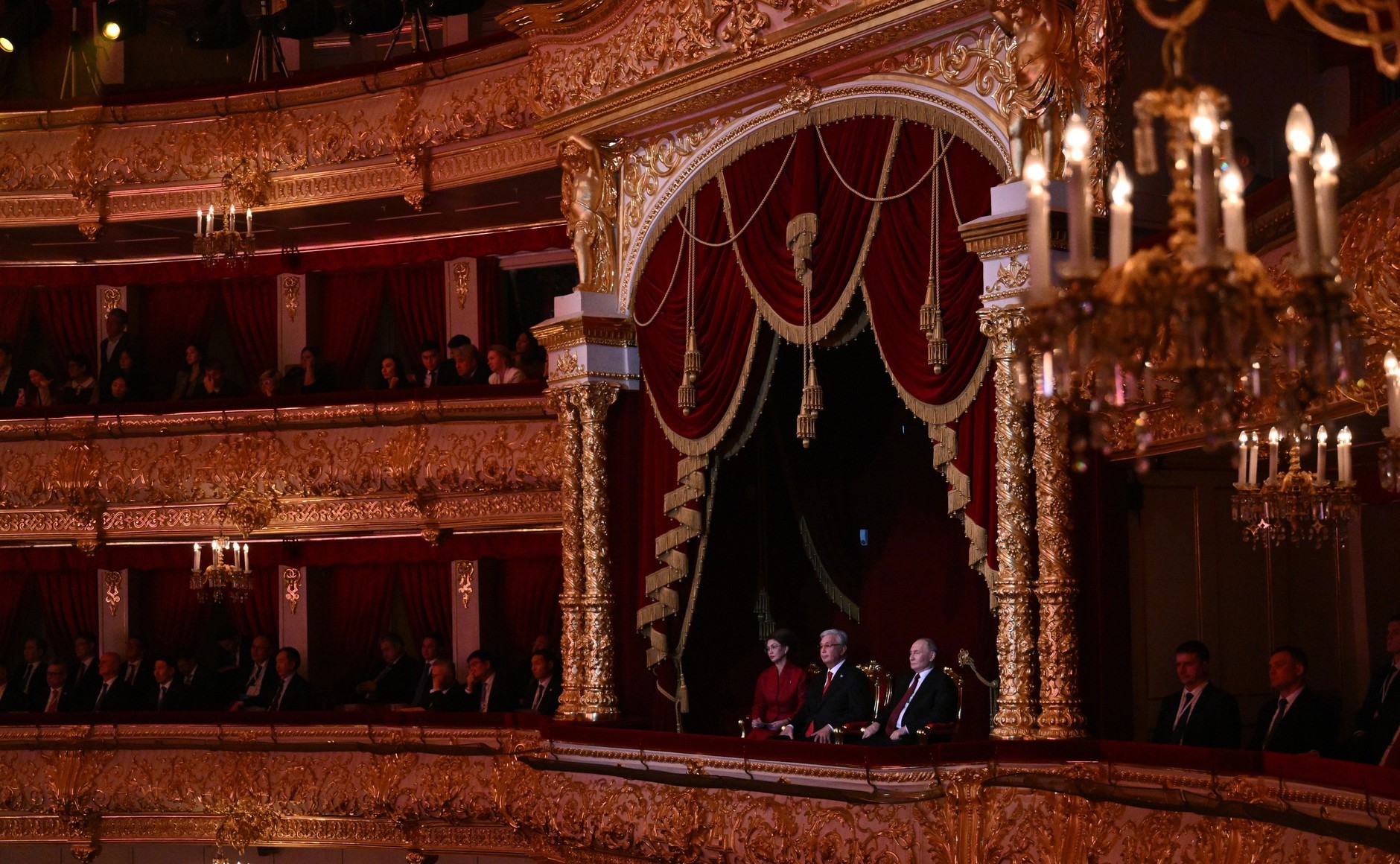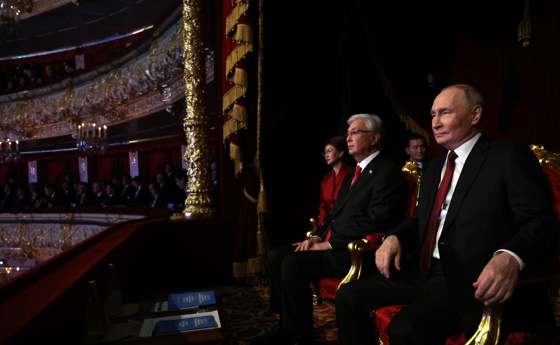 哈萨克斯坦艺术家在俄罗斯举办的“哈萨克斯坦文化日”音乐会弗拉基米尔·普京和卡西姆-若马尔特·托卡耶夫出席了在莫斯科大剧院举行的哈萨克斯坦艺术家音乐会,该音乐会是“哈萨克斯坦文化日”在俄罗斯举办的活动之一。2025年11月12日 晚上20:30莫斯科