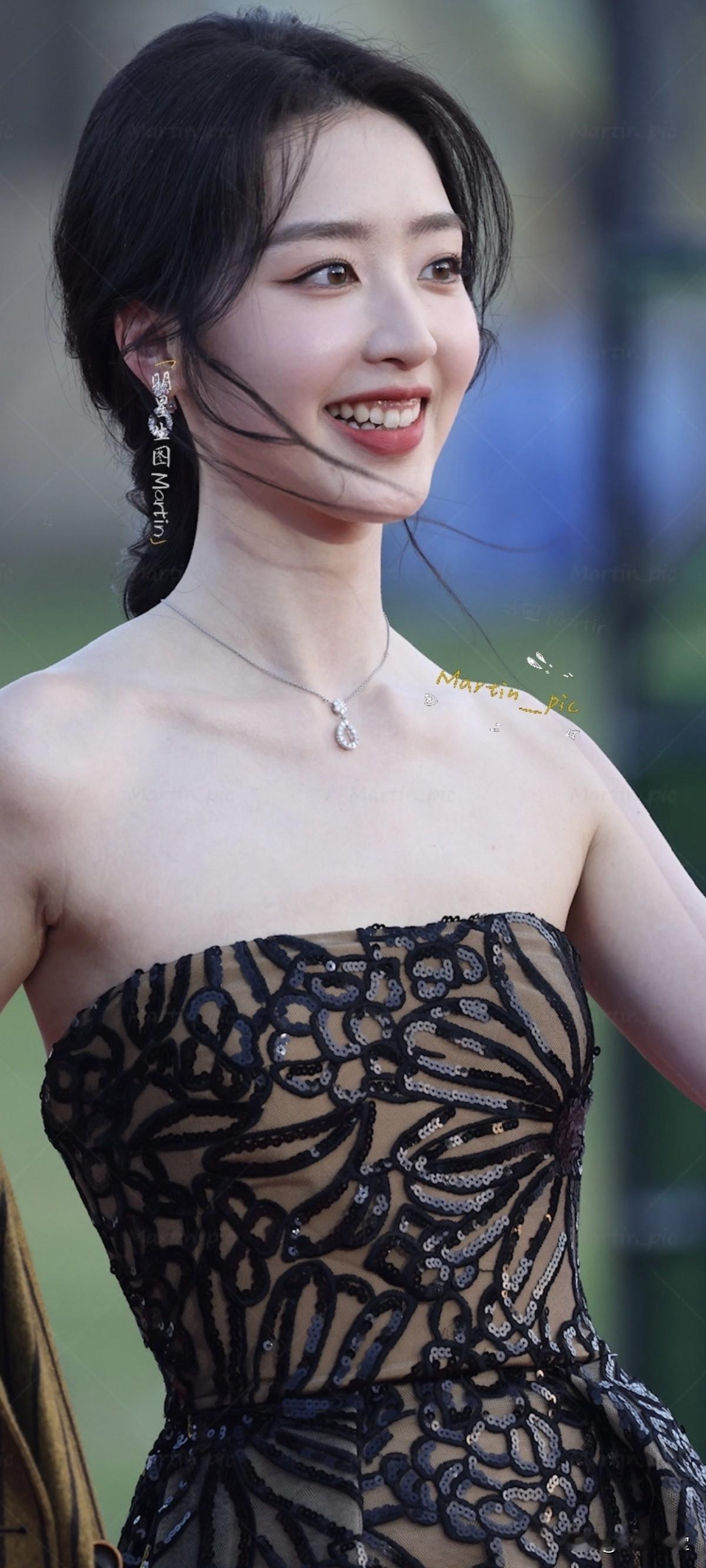 邓恩熙金鸡奖红毯生图 迎风走来的美貌,真的好明媚的笑容