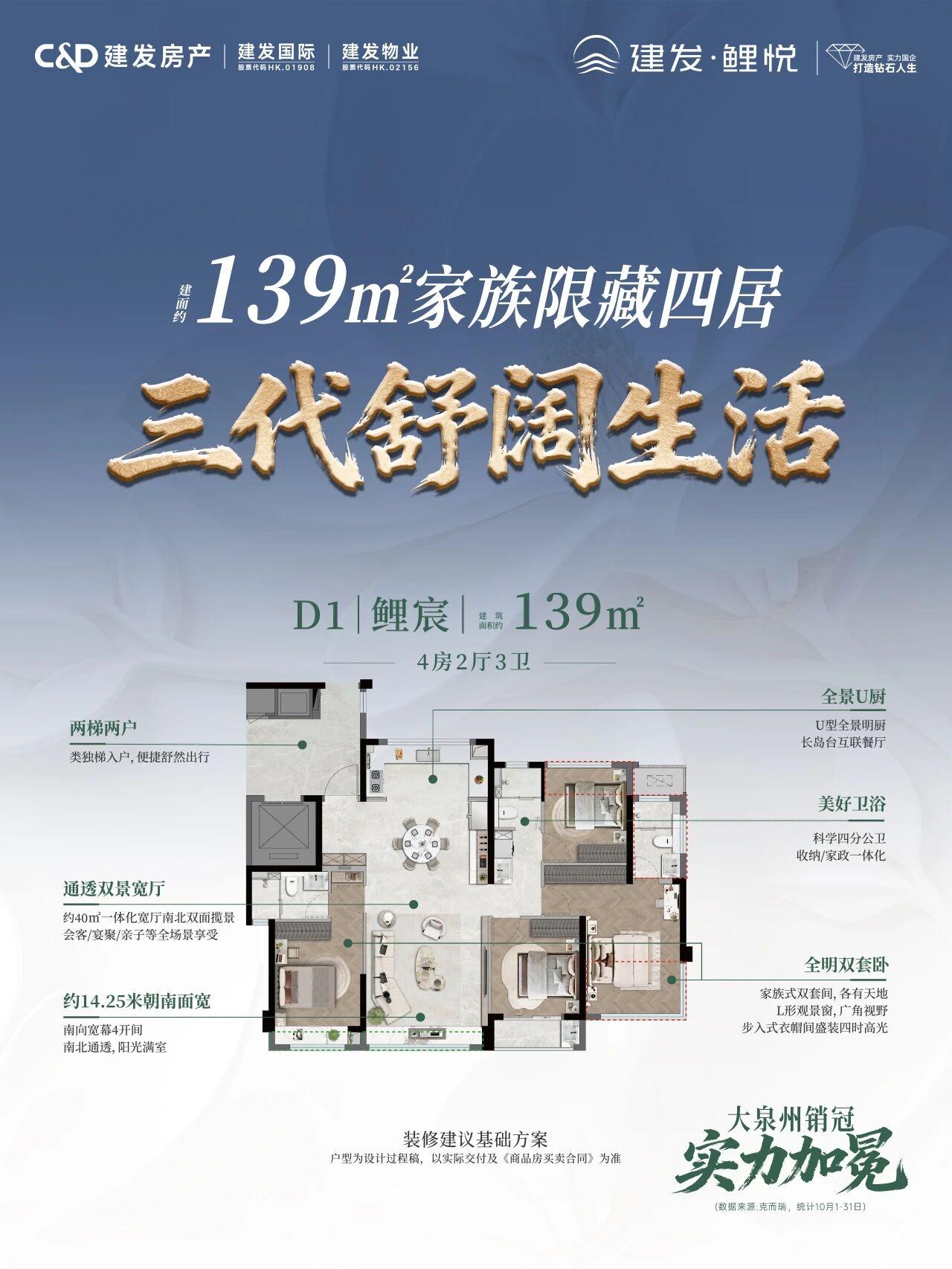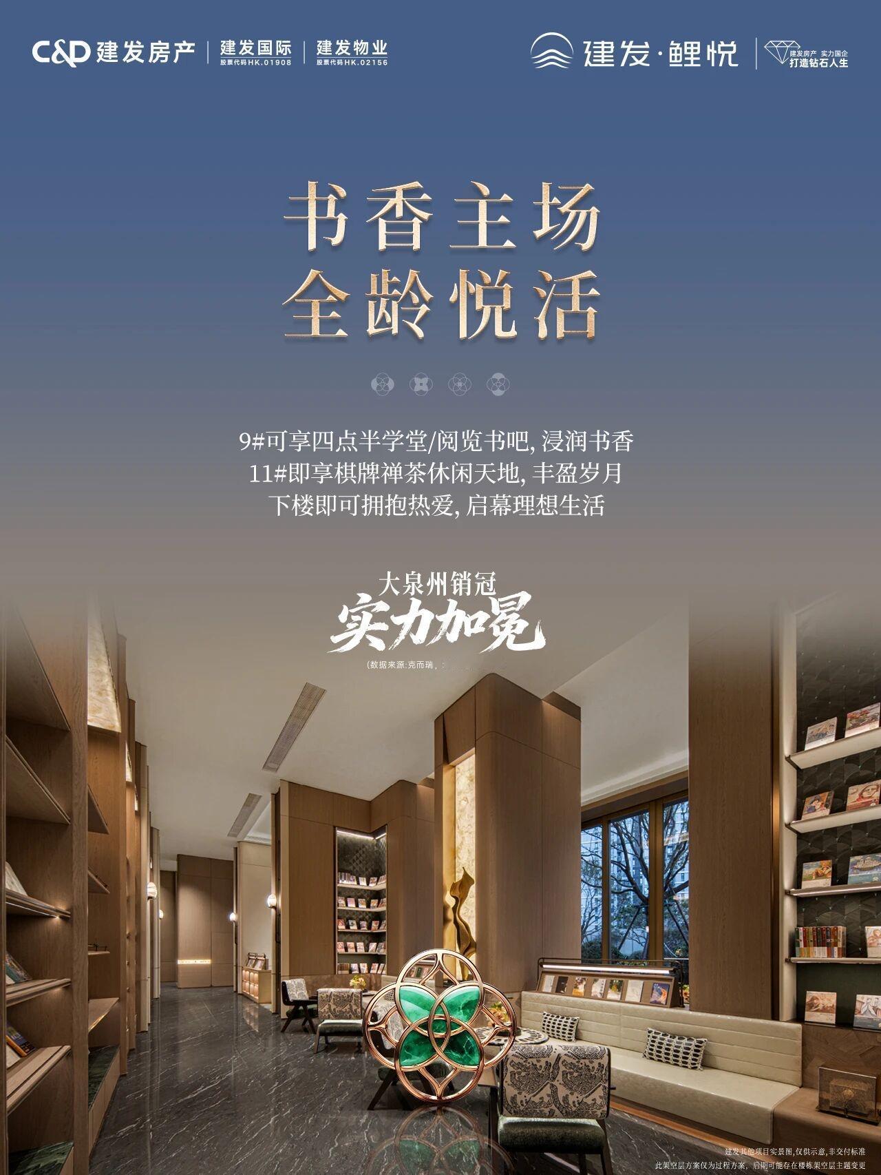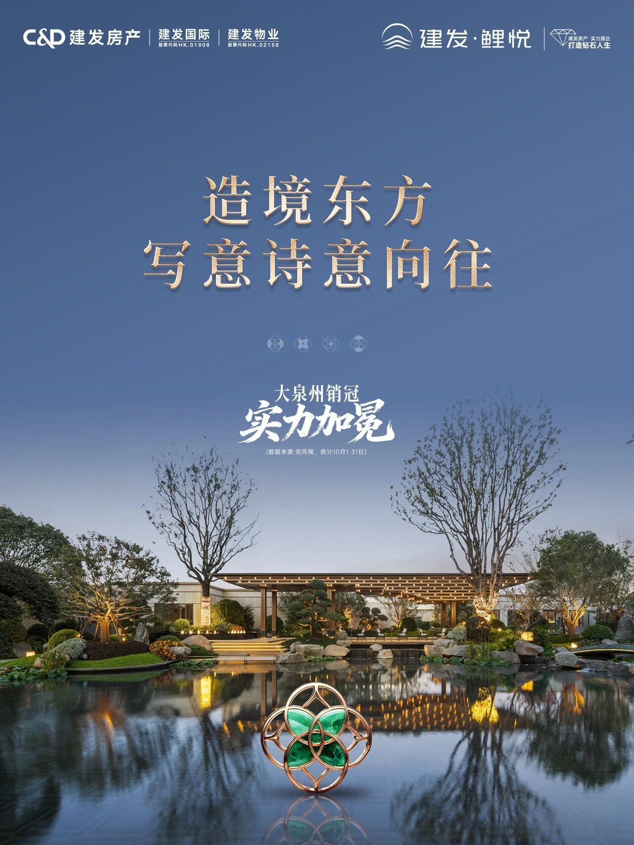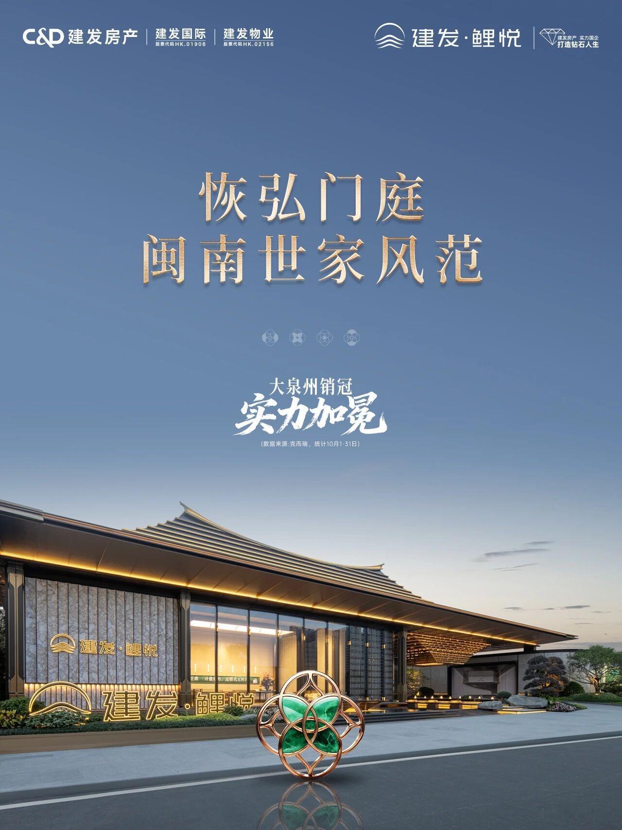 建发·鲤悦实力加冕,燃销泉城,荣膺2025年10月大泉州住宅销售套数、面积TOP1 (数据来源:克而瑞,统计10月1-31日) 以改善基因著写鲤城热望 ● 恢弘门庭 闽南世家风范 ● 造境东方 写意诗意向往 ● 阳光泳池 尽兴游弋身心 ● 9/11央景组团 火爆上新 ● 双面景观 舒阔尺度 全龄超配 ● 建面约99-170㎡书香大宅 泉城倾赏 万众所向 争藏不待!