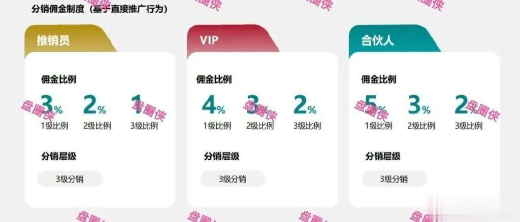 还设了四个层级,从推销员到合伙人,拉的人头越多佣金越高。这就是典型的分销模式。