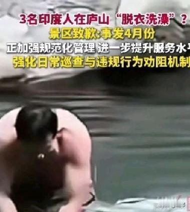 强烈谴责3名印度人在庐山风景区洗澡行为,美丽的风景不容尔等如此玷污。 近