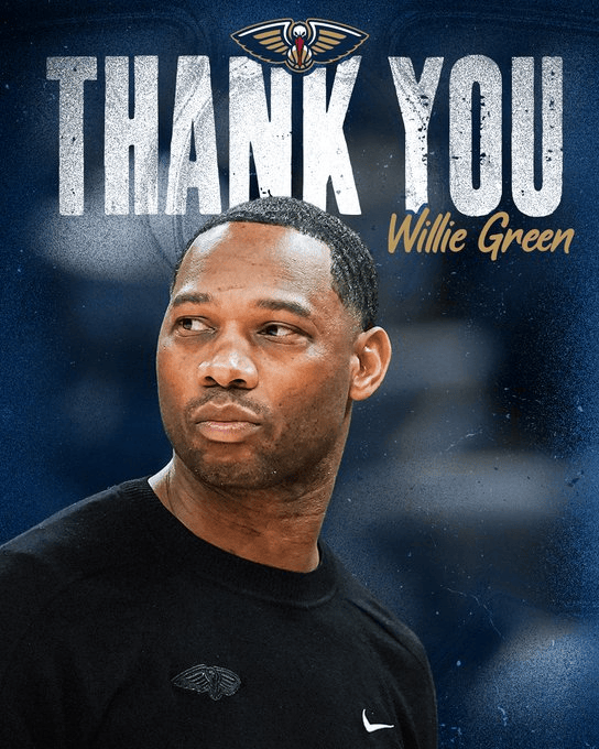 鹈鹕官方随后宣布,篮球运营执行副总裁乔-杜马斯决定解除威利-格林的主教练职务。