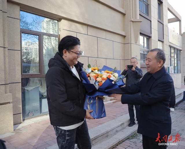 当日,在市委政法委、平城区委政法委相关负责人的带领下,省、市见义勇为协会负责人来到水泊寺街道文兴社区开展慰问活动,为臧凯送去鲜花和1万元慰问金,向以果敢行动诠释正义、以无畏担当彰显正气的平民英雄致以崇高敬意。