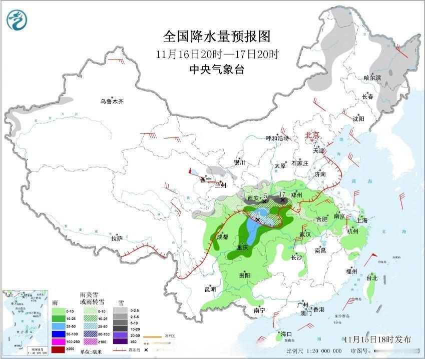 今晚寒潮前锋已经来到长城、阴山一线,接下来寒潮明天将迅速席卷整个黄土高原和华北平原,后天晚上寒潮前锋就要突破南岭武夷山,到18日白天海南云南也将被降温波及。我们提醒本次寒潮降温最剧烈的地方就是16~18日将遭遇大范围雨雪的秦巴山区,四川陕西河南湖北重庆明后天要警惕“断崖式”降温和湿冷;而长江以南寒潮到来前还有一两天“最后的温暖”,大家要准备拿出厚衣服应对大风降温了!