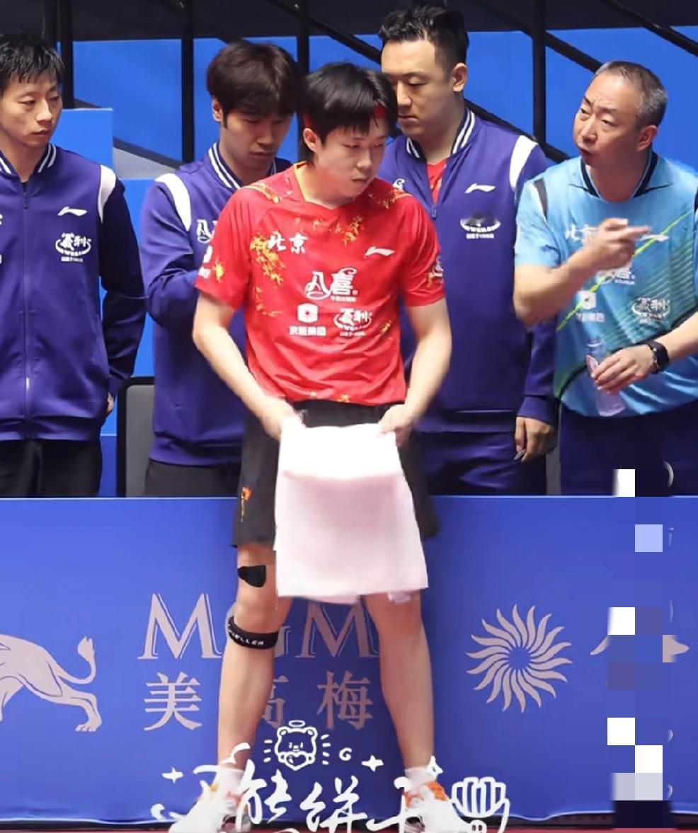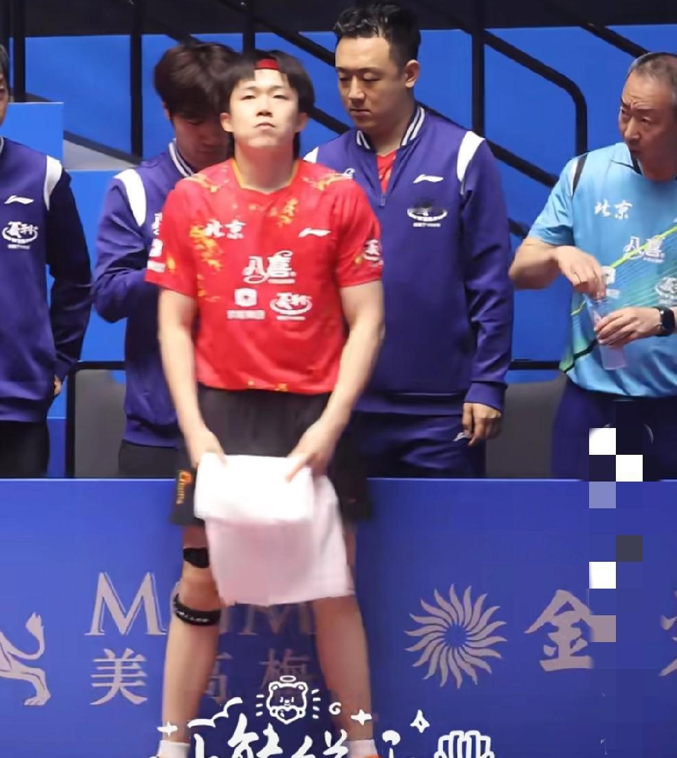 都说王楚钦在国家队的时候是牛马, 到了北京队也是牛马,哈哈, 只有在魏桥的时候能喘口气, 你们这比喻不要太形象啊。 今天晚上的男团连续打了两场, 一人为团队拿下两分。 今晚你们笑话楚钦眼里只看一号台, 其实人家是让闫安在给他别上自己的背后的名字, 因为印名字的衣服都穿完了。