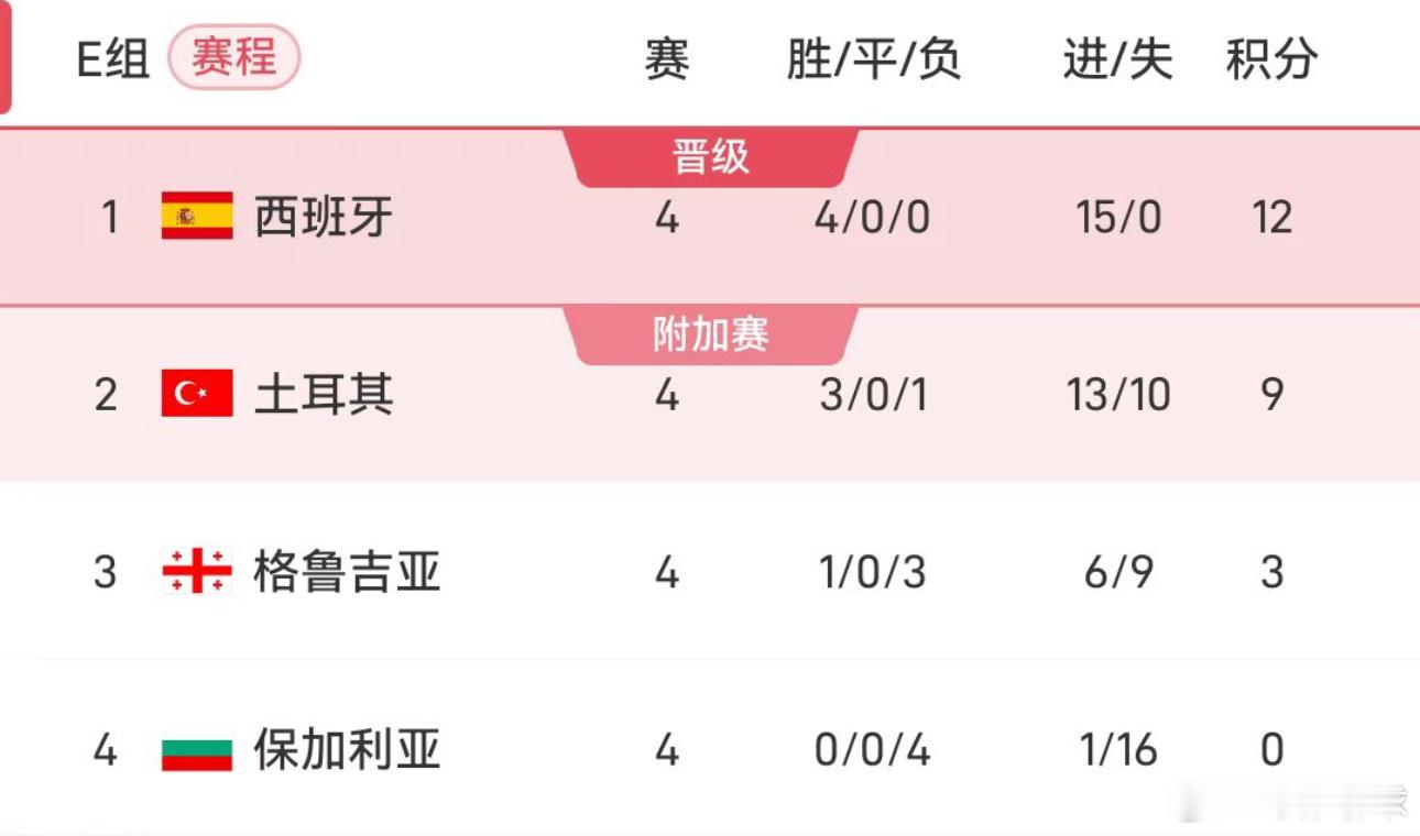 11月15日讯 克罗地亚今天晋级世界杯正赛后,世界杯参赛名额已锁定30席。今夜世界杯欧洲区预选赛继续进行,又将有哪些球队挺进美加墨?小编在本文中将带你预览今夜世欧预重要看点。 今夜聚焦:比利时取胜即出线,西、瑞、奥均有望提前晋级今夜J组先赛一场,小组头名比利时将前往客场挑战哈萨克斯坦,此役少赛一场的比利时若将能带回3分,就将领先第二的北马其顿4分,提前一轮挺进世界杯正赛。随后进行的E组比赛中,西班牙将面对格鲁吉亚,土耳其将迎战格鲁吉亚。目前领先3分的西班牙,若本轮取胜且土耳其未能全取三分,也将提前一轮进军美加墨。B组的领头羊瑞士将与瑞典迎来一头一尾的“双瑞之战”,若本场取胜且科索沃在另一场比赛未能全取三分,瑞士同样将提前获得世界杯正赛资格。排名垫底的瑞典也期待一雪前耻,获得首胜。H组的奥地利领先两分,本轮若能取得理想结果,也有可能提前出线。重点比赛预告15日 22:00 哈萨克斯坦vs比利时16日 01:00 格鲁吉亚vs西班牙01:00 土耳其vs保加利亚01:00 奥地利vs塞浦路斯03:45 瑞士vs瑞典