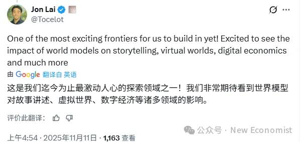 非常期待看到世界模型如何改变我们讲故事、构建虚拟世界乃至发展数字经济的方式。