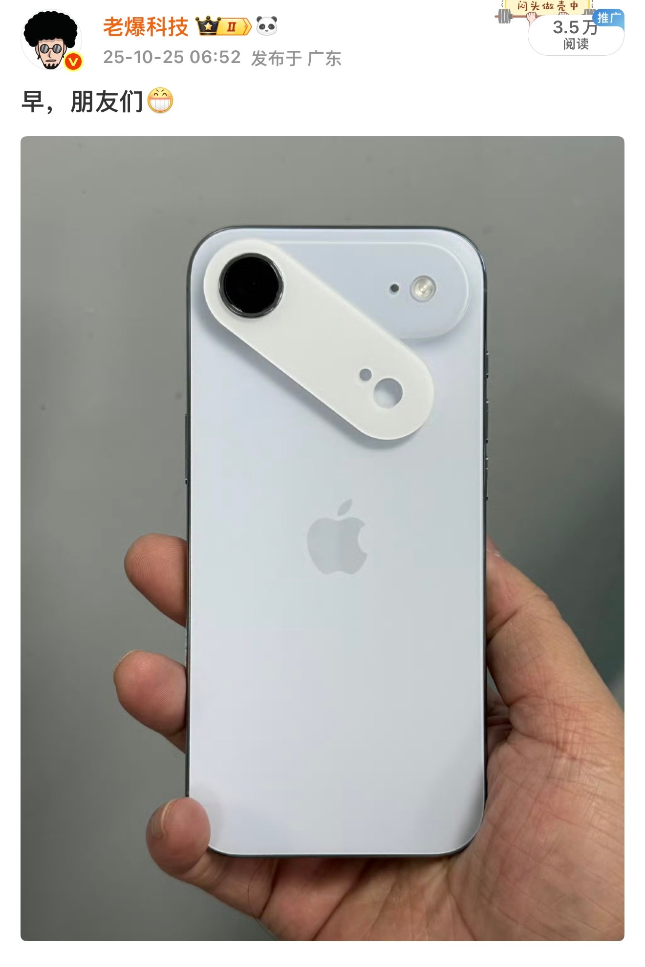 iPhoneAir 平嵌镜盖,上架11天,卖了1450个。这个东西在未来可能会比平嵌磁贴更受欢迎在做平嵌磁贴之前,我真的没有一秒钟想过未来会做一个类似镜头膜的东西。为什么会搞这个东西,是因为在初期脑暴平嵌磁贴的更多可能性的时候,遇到了摄像头凸起较高的手机咋个整?我想到了分体式设计,就是摄像头一个平嵌贴,手机背板一个平嵌磁贴。9月还画了 iPhone17Pro /17ProMax 的概念图。所以这个东西玩搞它只是为了搭配平嵌磁贴用的时候,放桌面时不会刮擦到手机摄像头。iPhoneAir 手机一拿到,我就连夜跑去工厂打样平嵌磁贴,打到凌晨大家心神俱疲的时候还没打到理想的平嵌磁贴样子,但是这个小盖子我拿起来往镜头上一卡,就拍下了图二,我瞬间就精神了,图二这个还没有做弧度倒角,也没有做到跟镜头齐平。我拿起游标卡尺卡了一下 Air 镜头凸起,2.59mm,我立马拿来2.5mm 的片子,顺带把师傅的手机借了过来说解下锁用来拍个视频,点两下收下了刚刚转去800块加班费,我说平嵌磁贴今天不搞了,咱们再打一个镜头盖子样品。就这样搞了一两个小时,天亮了,第一版平嵌镜盖的样品也就打出来了。在此之前,我没有买过任何 iPhoneAir 的镜头膜,凭感觉就造出来了,PC 磨砂材料,边缘高亮大弧度,精准匹配镜头开孔,看起来磨砂与亮面的光影交错感,有一点本机的感觉了。也许这就开启了我们为手机镜头 Deco 做配件的开端。