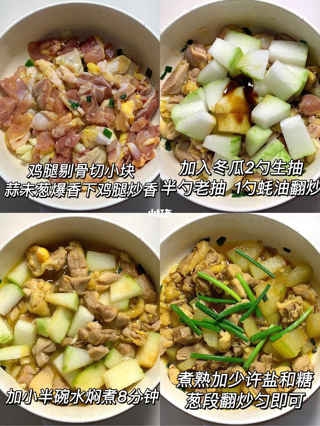 姐妹们!鸡腿➕冬瓜组合好好次呀,鲜美低卡,汤汁浓郁[害羞R][害羞R],冬瓜吸满鸡汤搭配着吃一整个香迷糊啦[哇R],做法简单,减至期的姐妹都可以去试试~ [开箱R]食材:鸡腿、冬瓜 🥣做法:热锅少油爆香蒜未葱 放入鸡腿炒香 加入冬瓜 2勺生抽+半勺老抽+一勺蚝油炒匀 倒入小半碗清水焖煮8分钟 最后少许盐和糖葱段炒匀即可