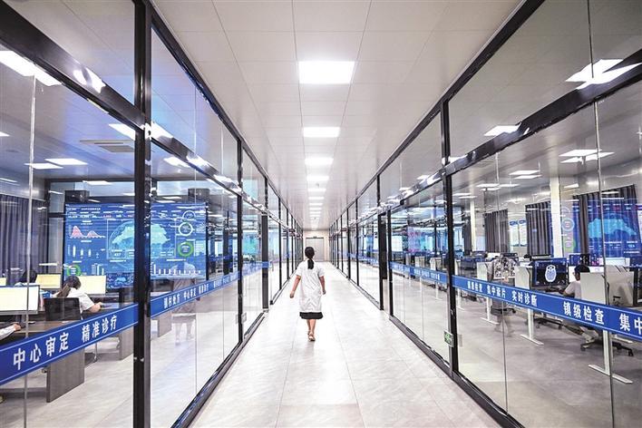近年来,江苏省东台市创新体制机制,成立独立事业法人的医共体运营发展中心,内设集中审方中心、转诊服务中心等十大中心,涵盖区域审方、药物配供、双向转诊等24项共享功能,打通救治诊治、检查检验、院外服务、运行管理各个环节,有效促进优质资源共享,持续提升基层医疗服务水平,让群众在家门口“看好病”。图为东台市数字健康驾驶舱。新华社记者季春鹏摄