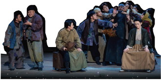 抗战题材作品常常自带历史的沉重感,如何在两个小时内浓缩都梁笔下丰富的北平风貌和故事情节,是最大的挑战。在创作之初,张若尘和团队就定下了两个“一定要”:一定要排“不像抗战剧的抗战剧”,一定要让年轻人,尤其是二十来岁的年轻人看明白、愿意看。“市场调研告诉我们,现在剧场的主力消费者是年轻女性,抓住她们,才算真正打开市场。”张若尘说。为了打破抗战剧“脸谱化、喊口号、重宏大场面”的固化模式,团队做了不少大胆尝试——《狼烟北平》在舞台呈现上借用了老北京瓮城的概念,悬浮在舞台上空的瓮城与舞台上的人物形成体量上的强烈对比。这也是大时代与小人物命运之间关系的对照。舞台上没有写实的道具,不是陈旧的木箱子,就是一个个的“盒子”,盒子里装载着尘封的记忆,还有家国的情长。舞台两侧以化妆镜作为布景,主动告诉观众“这是戏剧扮演”;谢幕时演员脱掉戏服,笑着唱歌收尾,让观众看完能感受到“当下和平生活的珍贵”。对于服装,张若尘也有严格要求:“哪怕是拉车的,衣服有补丁也得有质感,让每个角色都立得住。”而新生代创作的惊喜不止于此。《狼烟北平》选择了一人分饰多角保留“扮演感”的表演方式,采取一种融合民国时期演出风格和现代舞台元素的全新表现手法,让实时影像的当代感与剧情的历史感自然形成一种独特的剧场视觉空间。同时,剧中还加入了3首原创音乐,融入中国传统歌谣的音乐风格,简短而朗朗上口。现场乐队不但有非常具有民族特色的乐器三弦,甚至还安排了大提琴现场演奏,呈现出有趣的、厚重的、多变的音乐风格。这些在以往抗战剧里很少见的表现方式,让整部作品呈现出更加丰富的剧场性,也成为吸引年轻人的亮点。“我不怕元素多,因为我们的故事和人物足够结实,不会被冲淡。”在张若尘看来,需要用更有力的观演体验来传递给现场观众。多媒体设计等元素为整体的视觉表现赋能,长段的即时摄影可以增强视觉的临场感,多个视角加强剧中人物形象的同时,也能够使整剧的视觉语言更加统一。让观众感觉,这就是身边的故事。