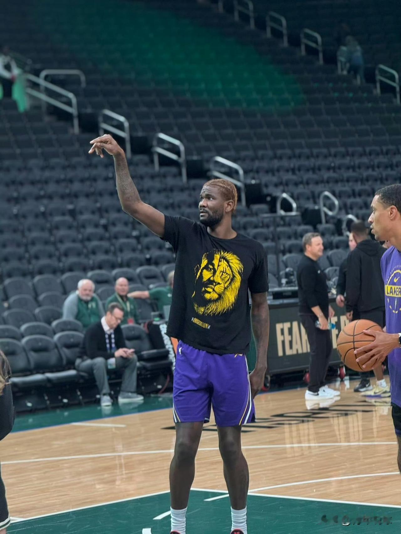 雷迪克太会提供情绪价值了吧! 今天,湖人队将客场挑战雄鹿队。赛前,雷迪克在接受媒体采访时穿了一件定制的艾顿系列短袖,正面印的是艾顿和雄狮半边脸组合的一整张脸,看上去非常霸气。艾顿在训练时也穿着了这件衣服。 谈到为何穿这件短袖时,雷迪克说道:“我们希望艾顿扮演狮子的角色,他有这样的能力,我们都相信他。”不得不说,雷迪克真的太会提供情绪价值了,艾顿听到肯定会斗志昂扬。今天背靠背对阵雄鹿,期待艾顿打出出色的表现!