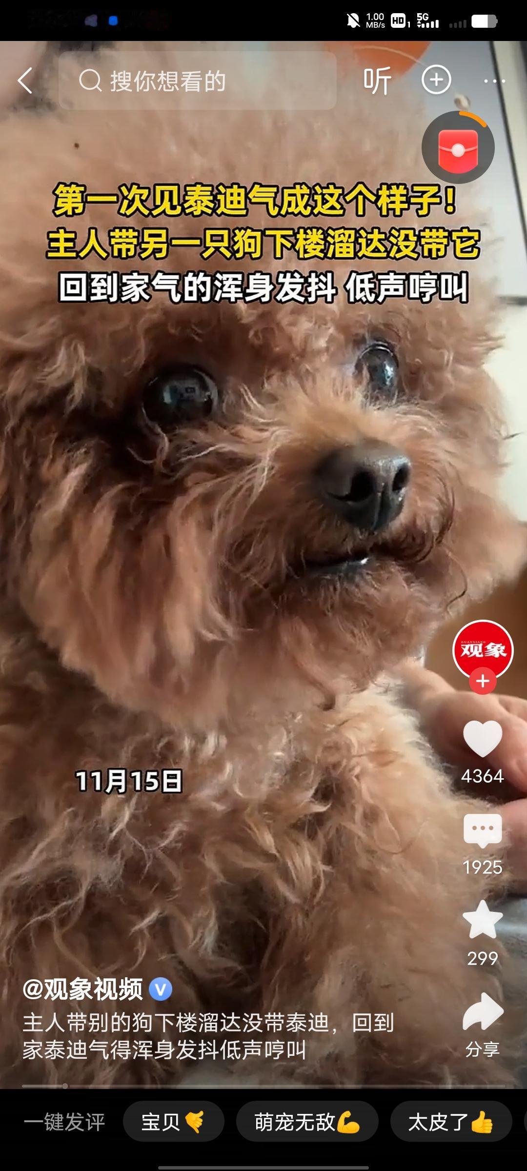 第一次见泰迪气得发抖,场景还挺多样。我朋友家有只泰迪叫布丁,有次家里来了个小孩,