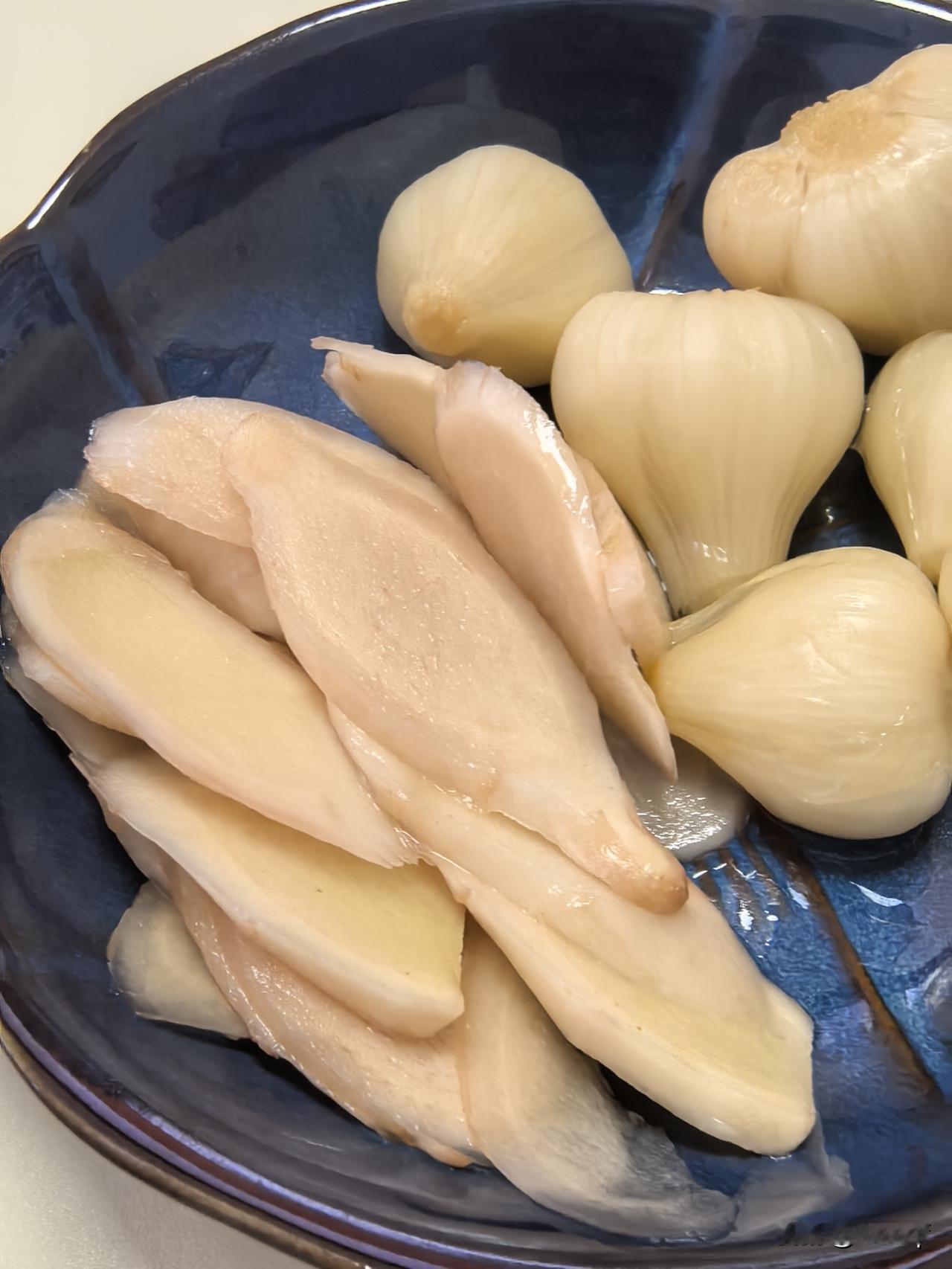 早餐,会不会多了点呢? 绿豆粥,客家萝卜粄,糯玉米,鸡蛋🥚,苹果醋仔姜和腌蒜头